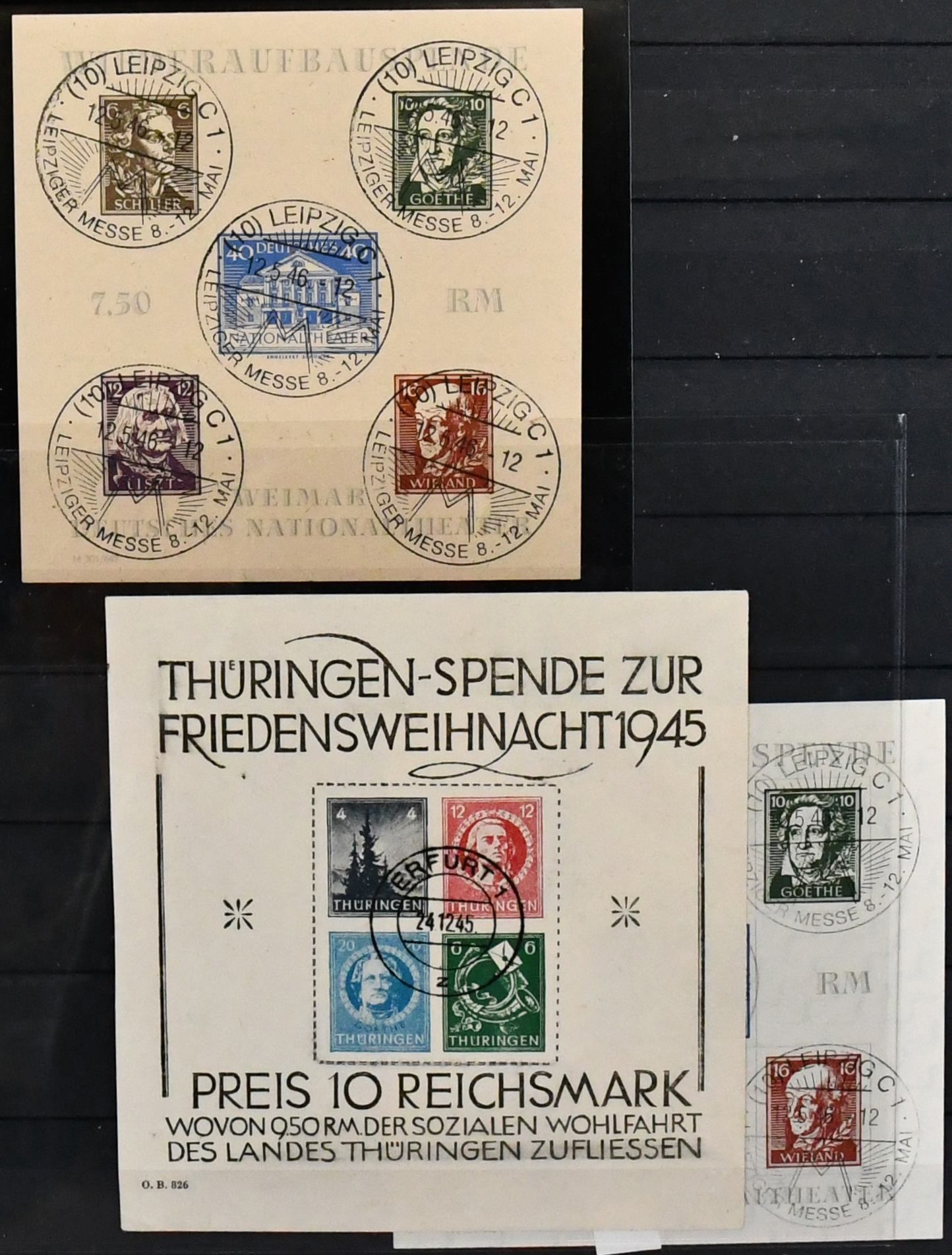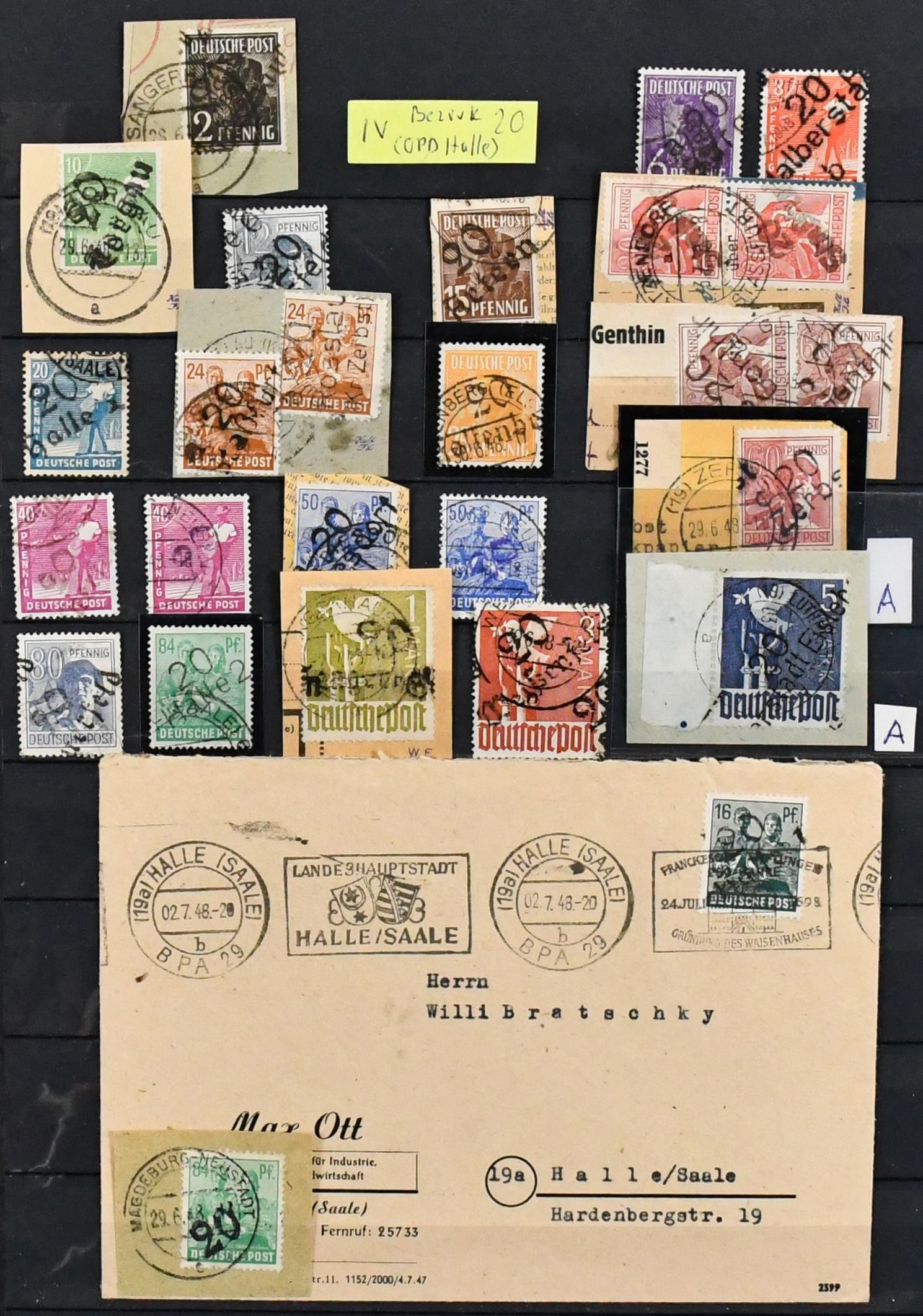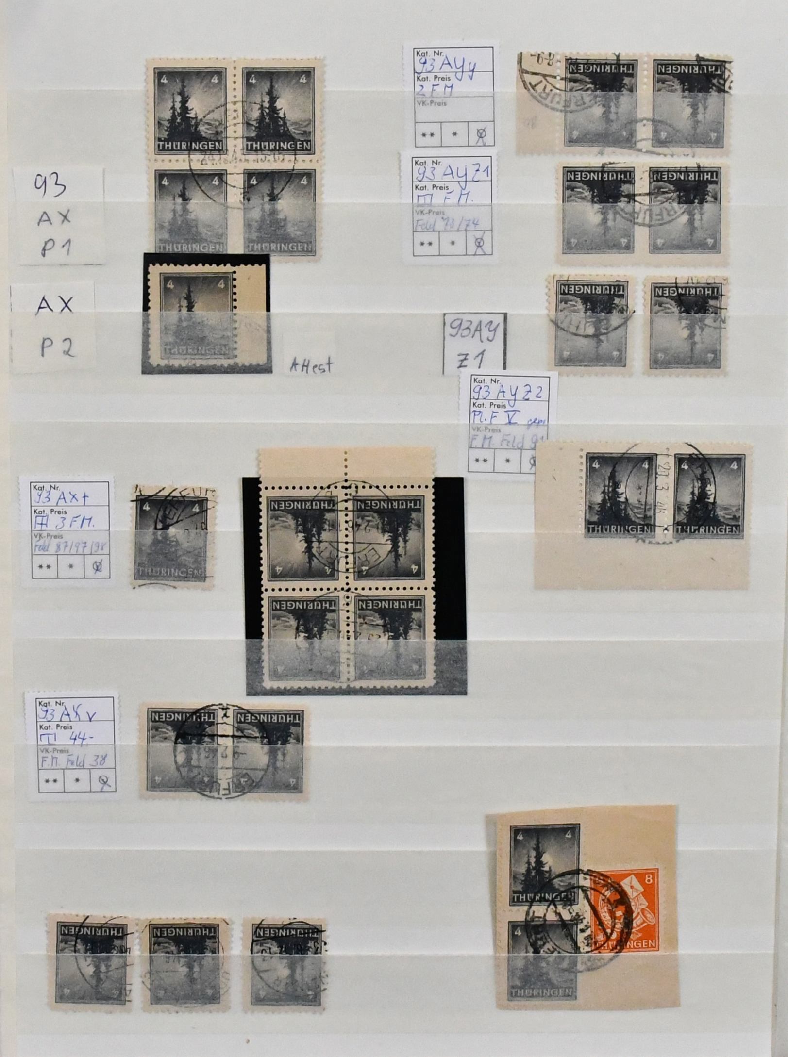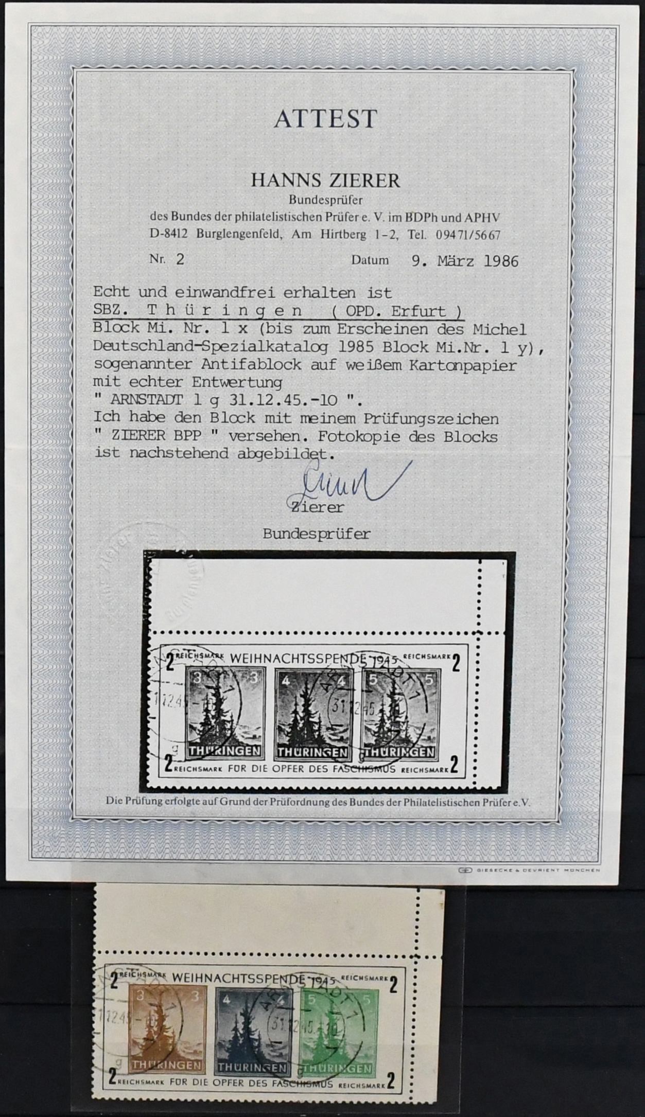 SBZ, ausschließlich gestempelte Spezialsammlung in drei Bänden, vielfach hochwertig besetzt mit allen Gebieten (es ist unmöglich, alles zu erwähnen, daher hier nur ein kleiner Auszug), u.a. Ostsachsen "Potschta", Postmeister-Ausgaben, Nr. 80X mit Attest, Thüringen Bl. 1x, 2x und t mit Attesten, Bl. 4a und c mit Attesten, Papiere mit teuren und div. Attesten, Westsachsen mit u.a. Nr. 150/55 Attest, Bl. 5X/Y, ferner starker Handstempel-Teil mit mehrfach Nr. 179 nach Bezirken, z.B. 179VIa/b mit Attesten, diverse Ziffern, Tauben mit mehrfach 5 Mark, u.a. IId, IIaVb u.v.m. (2500,-)