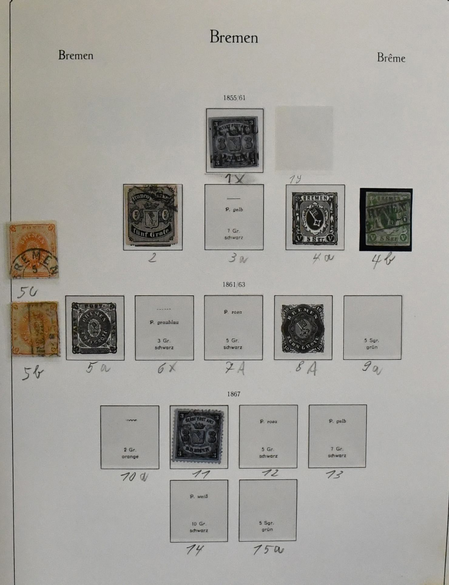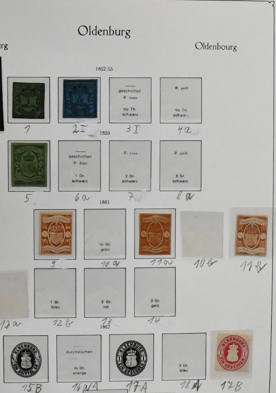 Altdeutschland, Slg. in zwei KABE-Vordruckalben, die erste gestempelt mit besseren wie Baden je zweimal Nr. 21/22, Bayern ab Nr. 1, Oldenburg ab Nr. 1, Schleswig-Holstein ab Nr. 2/3, die zweite Sammlung nur ungebraucht (selten angeboten!) mit z.B. Bayern tadelloser Nr. 26X, Oldenburg Nr. 1 und 5 etc. Die Erhaltung ist sehr unterschiedlich, bei der gestempelten Sammlung haben wir diverse Werte mit Falschstempel nicht bewertet! (2500,-)