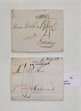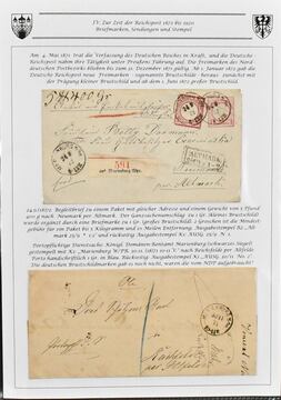 "Aachen", vierbändige Heimatsammlung auf ausstellungsmäßig selbstgest. Seiten ab ca. 1785, enthalten sind 183 Belege (fast ausschließlich bis 1920) mit Schwerpunkt auf der Vorphilatelie. Dabei z.B. der gute Schreibschrift-L1 "Aix la Ch:" in blau und rot, Departement-Stempel "103" in versch. Varianten, Feldpost, u.a. mit "5e Don/Arm. du Danube" usw. Die Preußenzeit mit frankierten Briefen, Ganzsachen und unfrankierter Post reichhaltig vertreten, ferner NDP, Brustschilde, Pfennig/e etc., zusätzlich ein guter Teil Transitbriefe mit entsprechenden Stempeln sowie auch etwas "Stadtteile", z.B. mit frankierten Briefen von Burtscheid. Ein inhaltsreiches Objekt mit Substanz