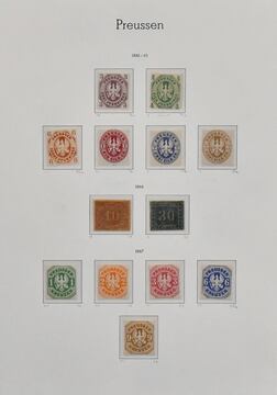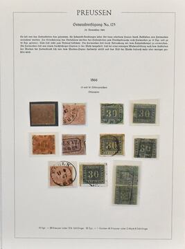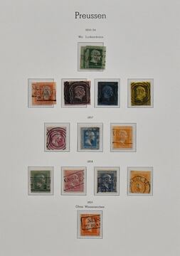 Preußen, weit überkpl. Slg. in überwiegend guter Erhaltung auf Albumseiten, dabei u.a. Nr. 1(3), 3-4, 5(2), 7(3), 8(2), 9(3), 11 im Paar, 13a(2), tieffarbige Nr. 13b, 19, 20(2), 21, 22-26 usw.