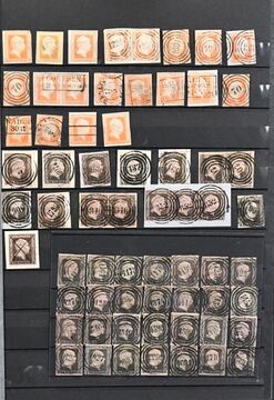 Preußen, sehr reichhaltige, teils spezialisierte Slg. mit alleine über 300 Kopfmarken, dabei zwei gest. Paare Nr. 1, Nr. 3 im Paar, 4 im Paar, 5(6), 6 fünf Paare (einmal mit breitem Bogenrand), ein Dreierstreifen, 7a(5), b, c(2), 8a-c, Nr. 9 mit NS, 11c (Fotoexp. Brettl), 13 per neun gest. inkl. Paar, auch Wappen mit Einheiten, Randstücken. Der Michelwert nur der Ausgaben Nr. 1-13 beträgt schon rund 13500,-, dabei keinerlei Aufschläge für die teils besseren Entwertungen gerechnet!