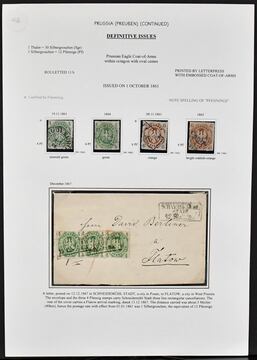 Preußen, Wappen-Ausgabe (vorweg zwei lose Nr. 13), Teil einer englischen Ausstellungs-Sammlung mit alleine 27 Belegen (inkl. Ausland und Express)