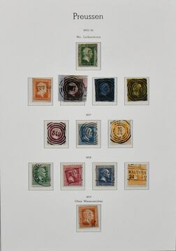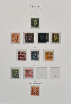 Preußen, überkpl. Slg. auf Lindner-T-Vordrucken, etwas untersch. Erh. (einiges "oxidiert"), dabei Nr. 5a/b, 7(2), 8a/b, 17a/b usw.