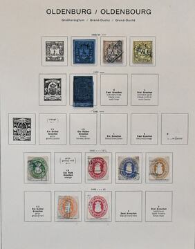Preußen, bis auf einen Wert kpl. Slg. auf Vordrucken (statt Nr. 8 zweimal Nr. 12), dazu diverse Oldenburg-Werte inkl. Nr. 15-19 kpl. gest.