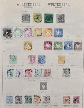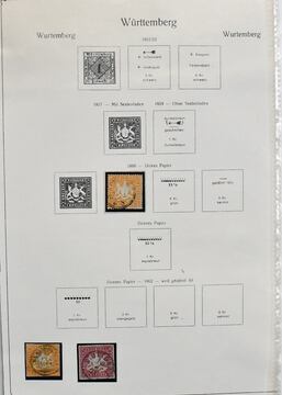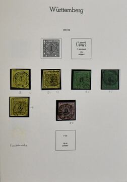 Württemberg, 1851-1920, gest. Slg. auf alten Schaubek-Vordruckblättern, dabei u.a. Nr. 3b und 4a je breitrandig, Nr. 11, 17y, 18x, 25-27, 31-33, 39, 41, 48-49 usw.
