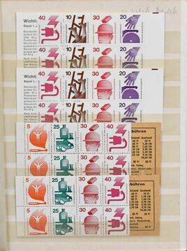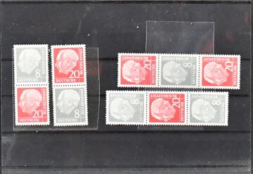 Bund, Zusammendrucke, postfr., gest. und auf Briefen, Slg. ab Bed. Deutsche, aber meist Brandenburger Tor und Unfallverhütung. Dazu einige "normale" postfrische Ausgaben. Mi. 900,-