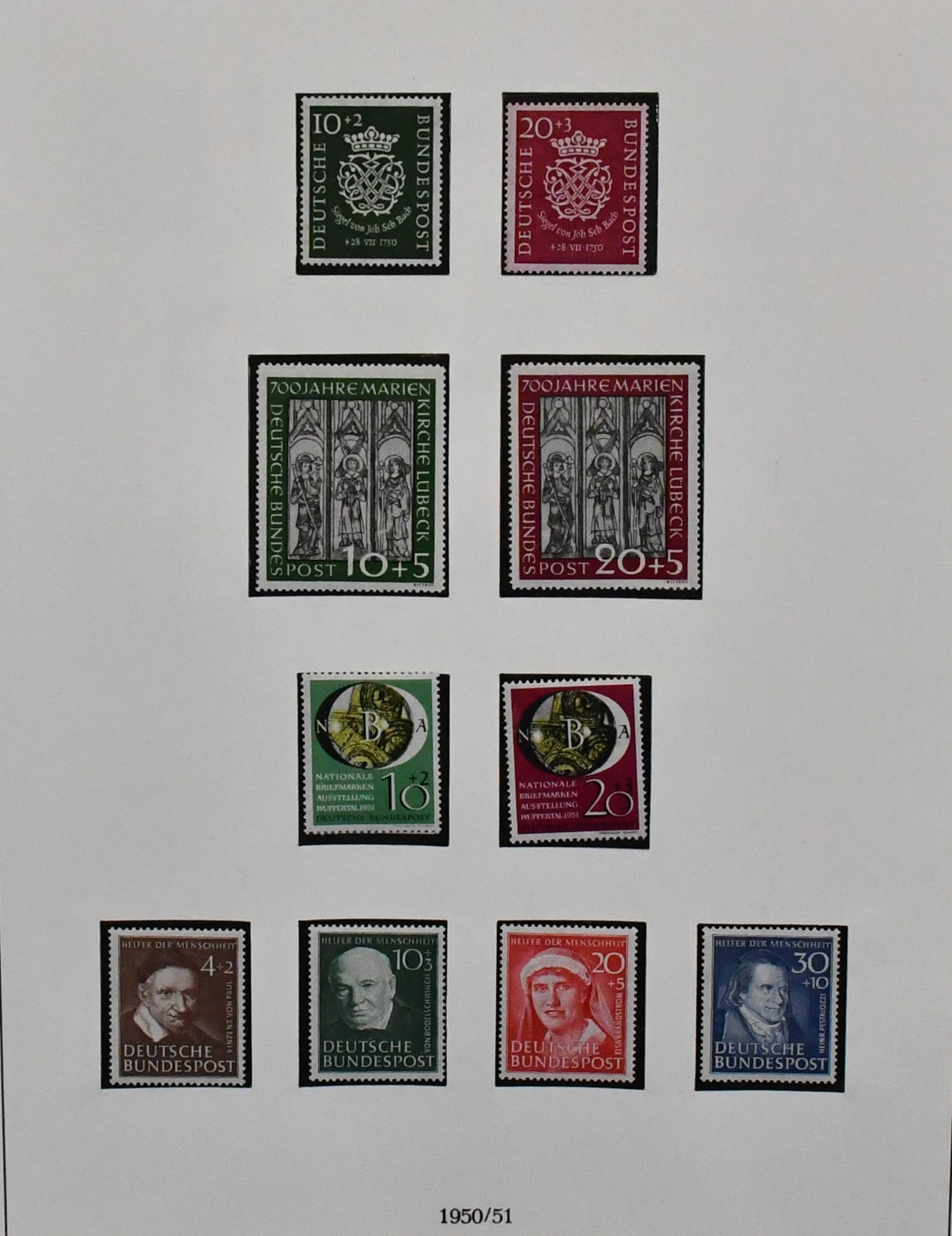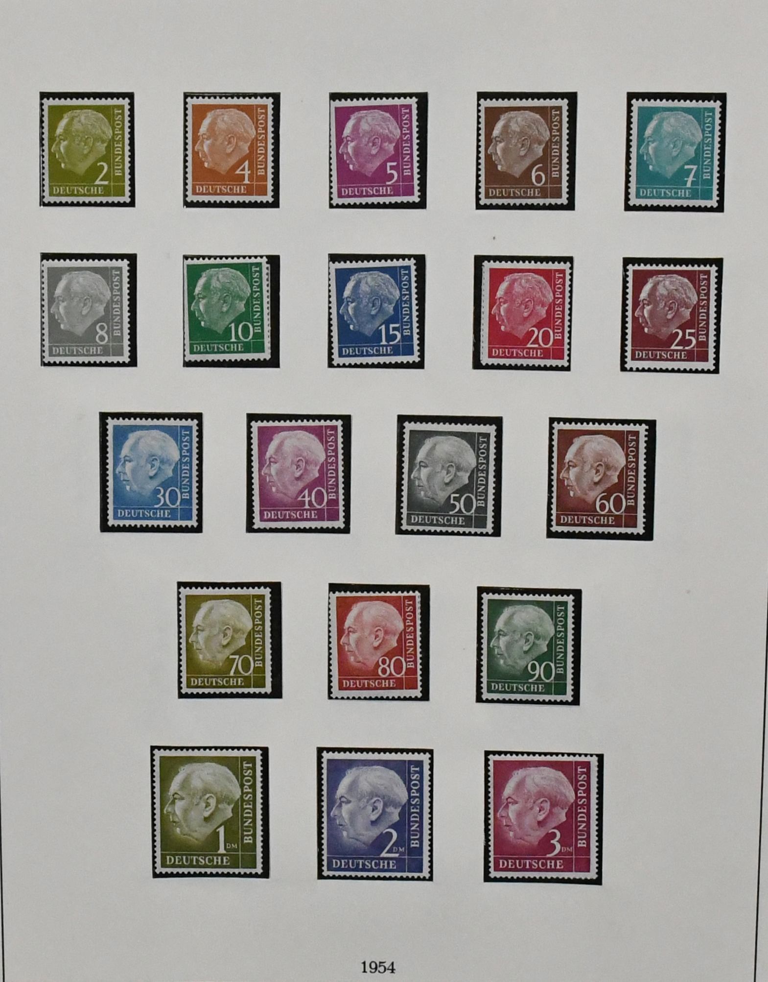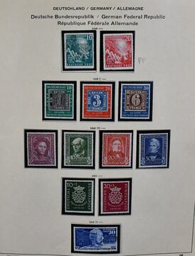 Bund, 1949-1968 in zumeist beiden Erhaltungen kpl. im Lindner-T-Vordruckalbum, ungest. fehlt die 60 Pfg. Posthorn, gest. die Nr. 174-76 u. Bl. 2, dazu Heuss lumo mit Eckstempel, hoher KW!