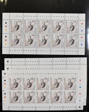 Bund, 1994-2000, postfrische Zehnerbogen-Slg. in zwei Bänden, insgestamt 330 KLB. Hoher Katalogwert (geschätzte 6000,- Mi.)