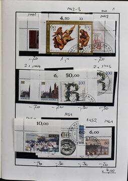 Bund, gest. Partie von rund 1100 Bogenecken, alle mit ESST aus dem Zeitraum der 90er Jahre bis in die Eurozeit. Dabei hohe Dauerserien-Wertstufen, Zuschlagssätze usw. Der Markenwert, ohne Zuschlag für die Bogenecken, beträgt bereits 2300,- Michel