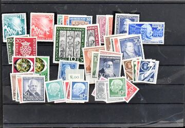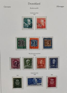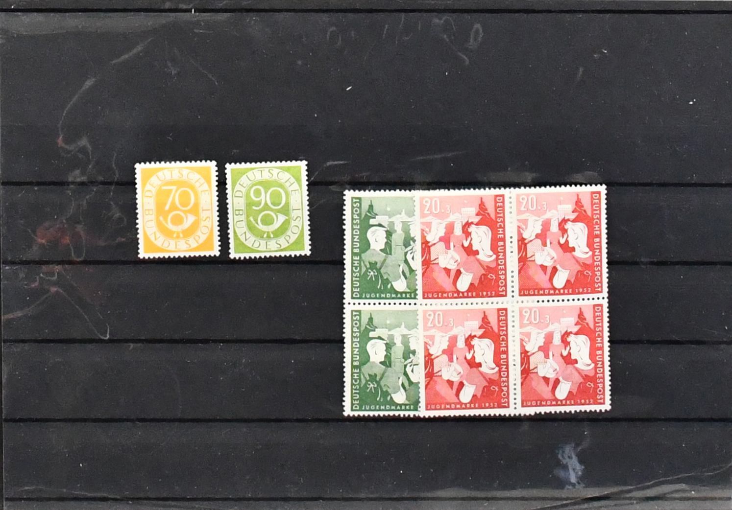 Bund/Westzonen, 1949-1994, Sammlungsbestand in zehn Alben mit Material in allen Erhaltungen (meist postfr./ungebr. oder gest.), ab Anfang mit Nr. 111/12, 113/15, 117/20, 121/22, Posthorn-Teile, 139/40, 142, 143/46, 156/59, 173/76, dazu Zusammendruck-Slg. ab Posthorn/Heuss, ferner Westzonen mit Kontrollrat Bl. 12A/B, Bizone Bl. 1, Lagerbücher, Belege etc.