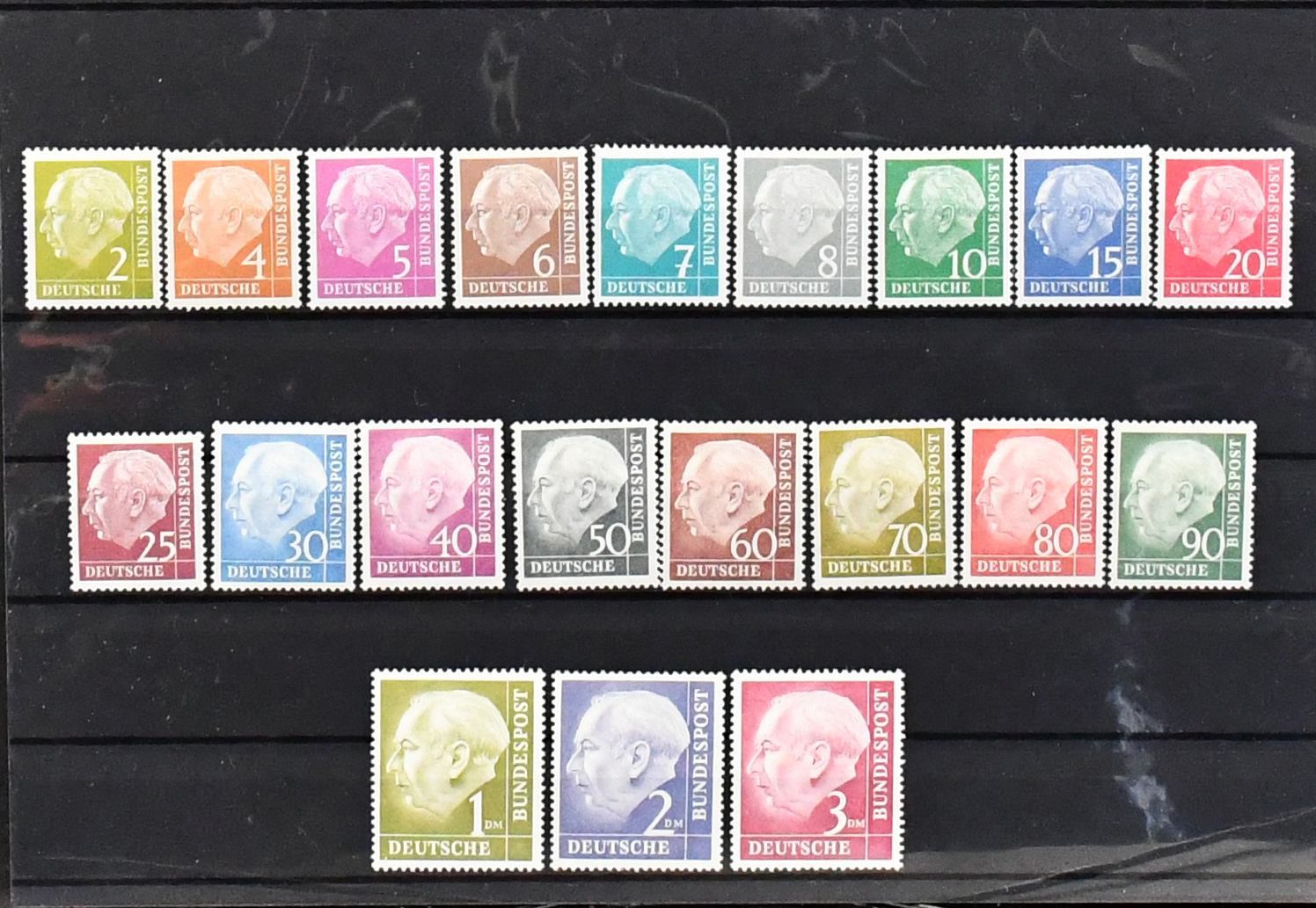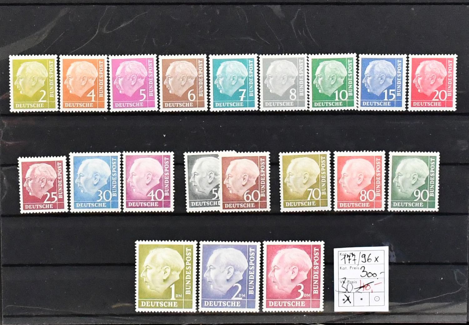 Bund, Erstausgaben, postfr./ungebr. Bestand inkl. 70 u. 90 Pfg. Posthorn (je Falz), 153-54 in postfrischen VB, sowie zwei Heuss-Serien