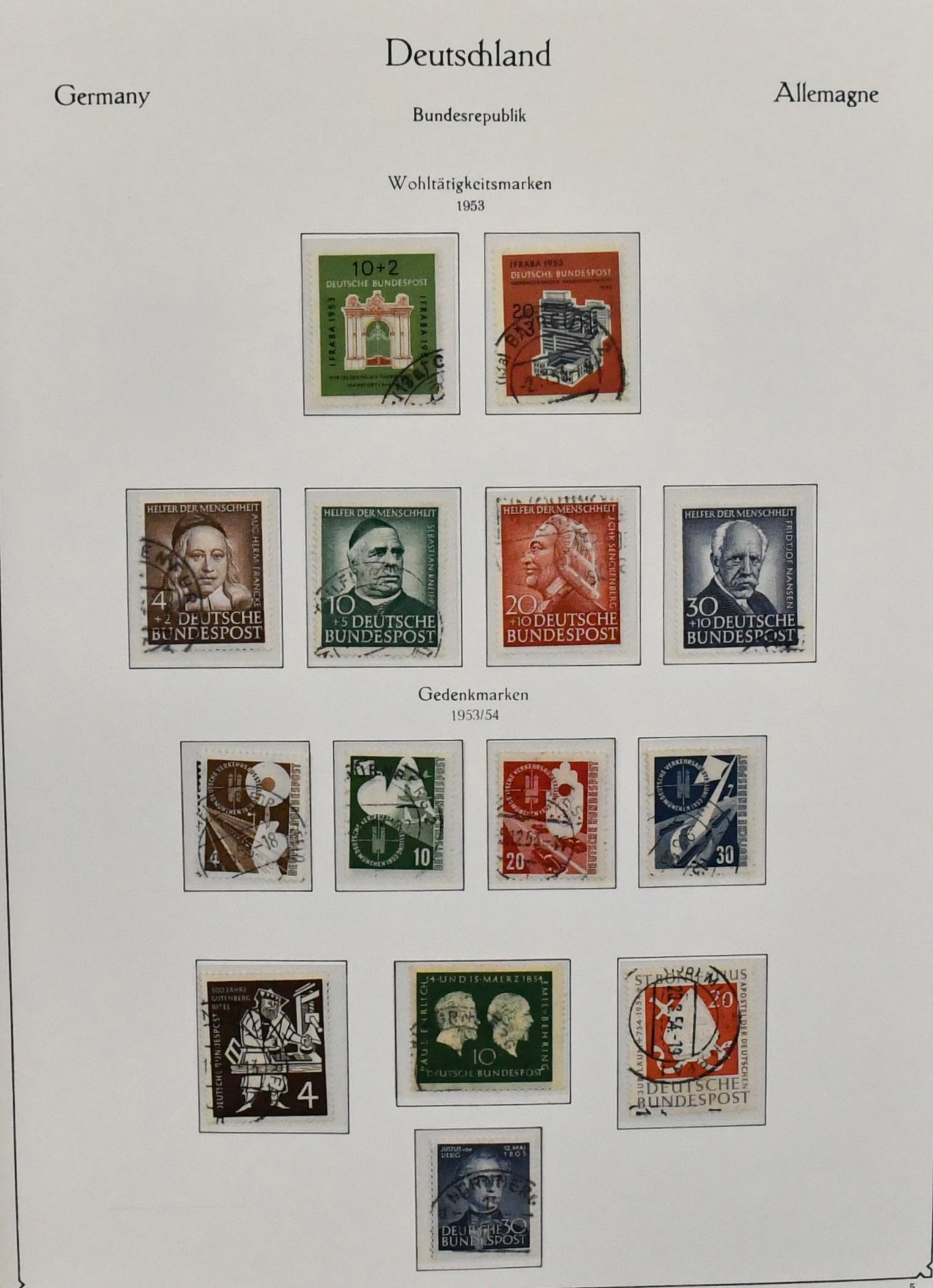 Bund, 1949-1965, überkpl. Slg. auf Vordrucken, meist ungebraucht, mit allen besseren Anfangswerten inkl. Posthorn, dazu diverse Heuss-Zus.-Drucke ab 1955