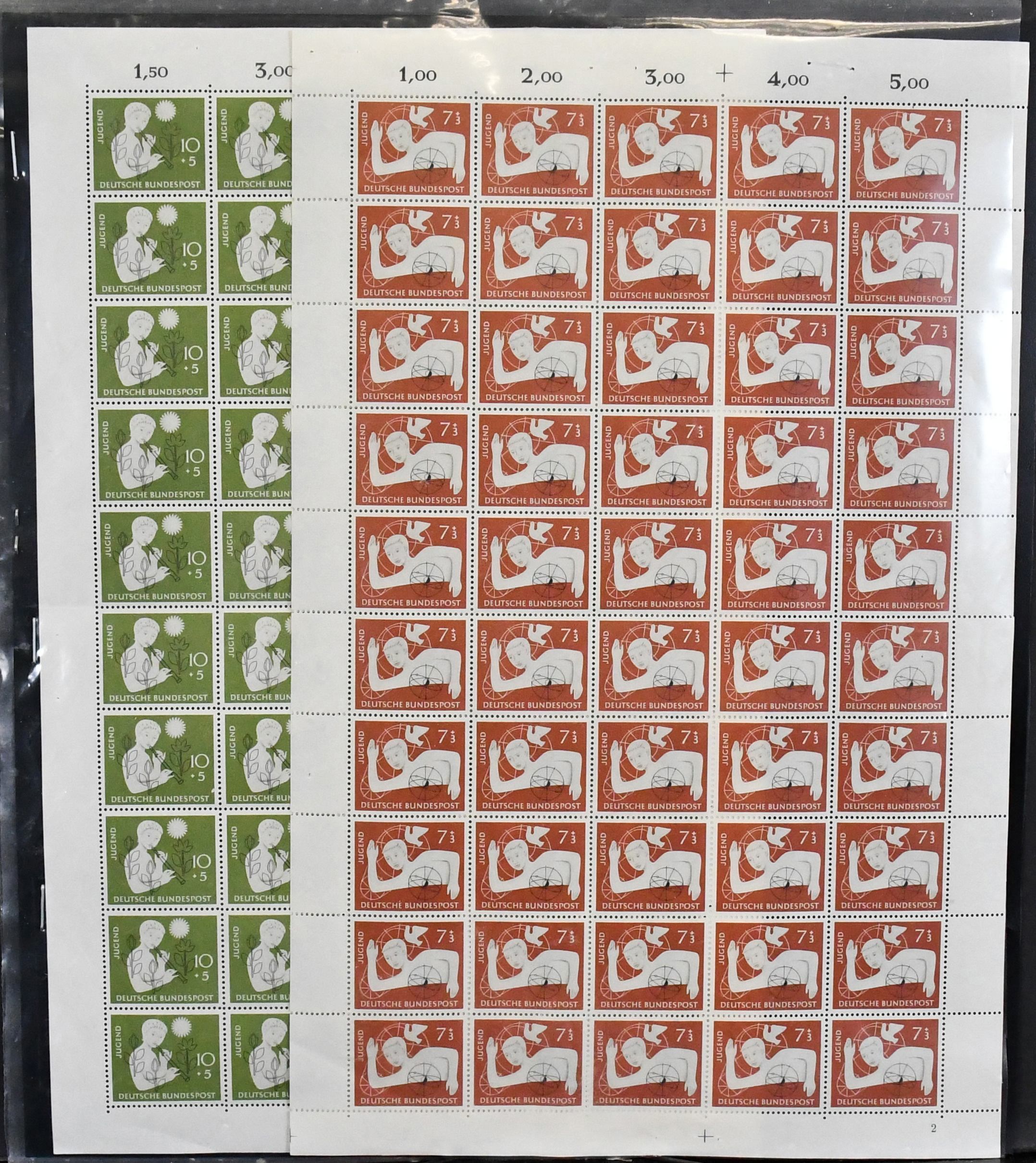 Bund, Jugend 1956, Mi.-Nr. 232-33 im kpl. Bogensatz postfrisch (dabei Nr. 232FNR2), Mi. mind. 500,-