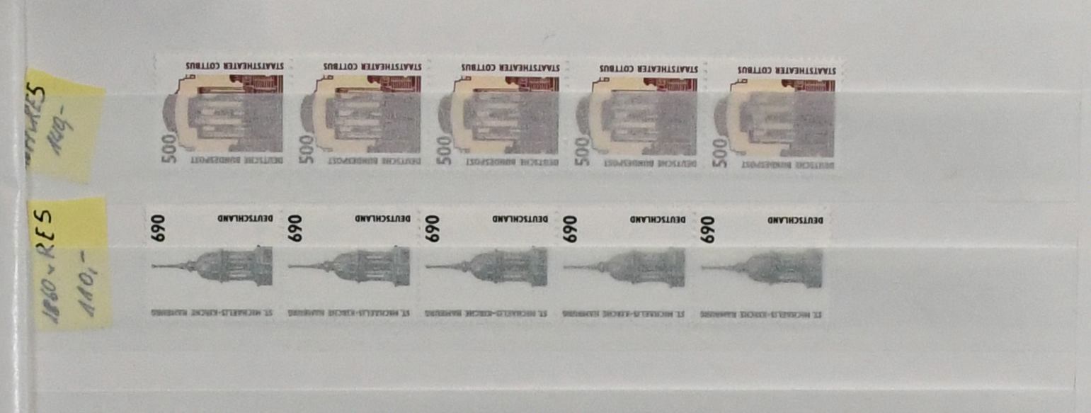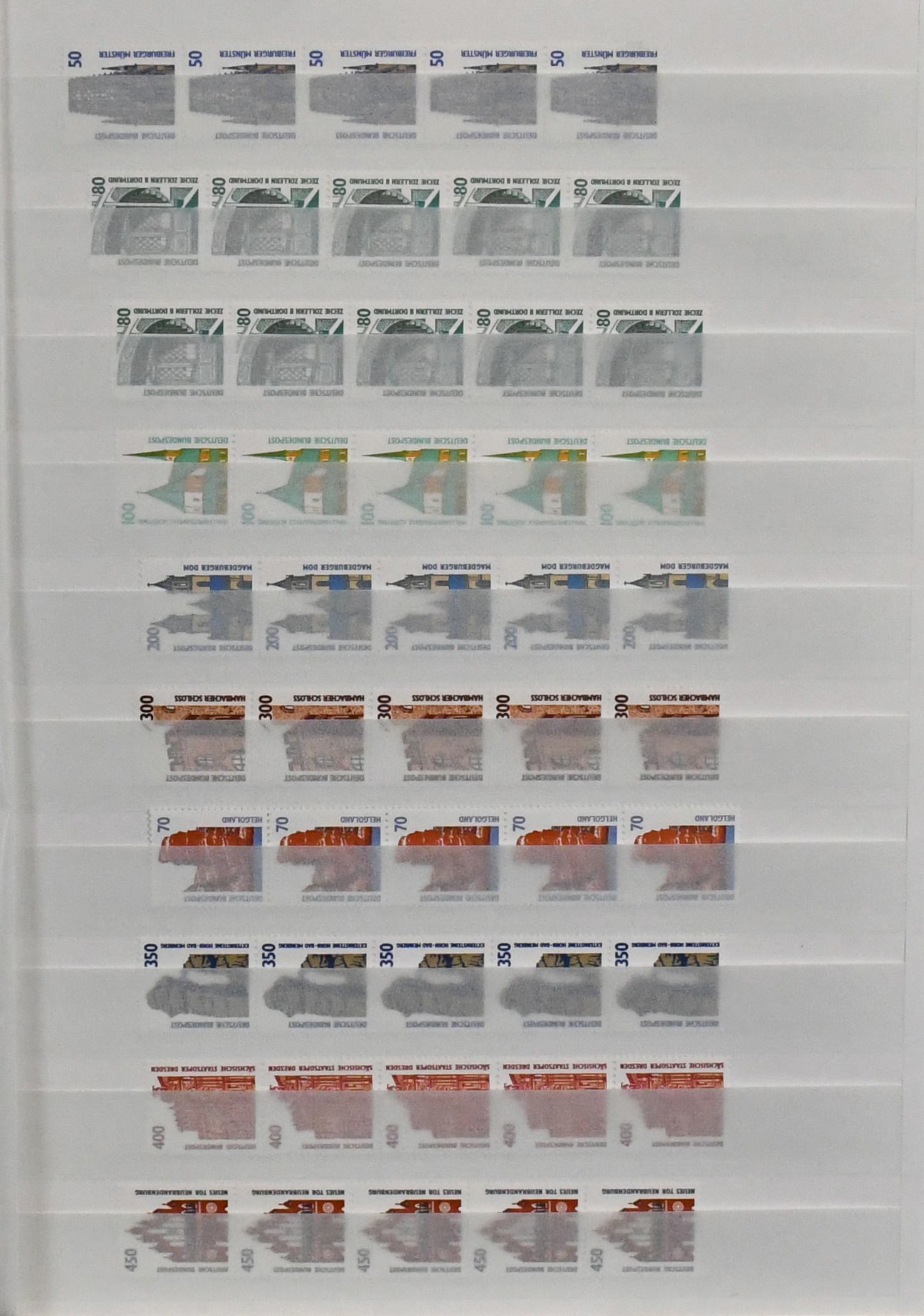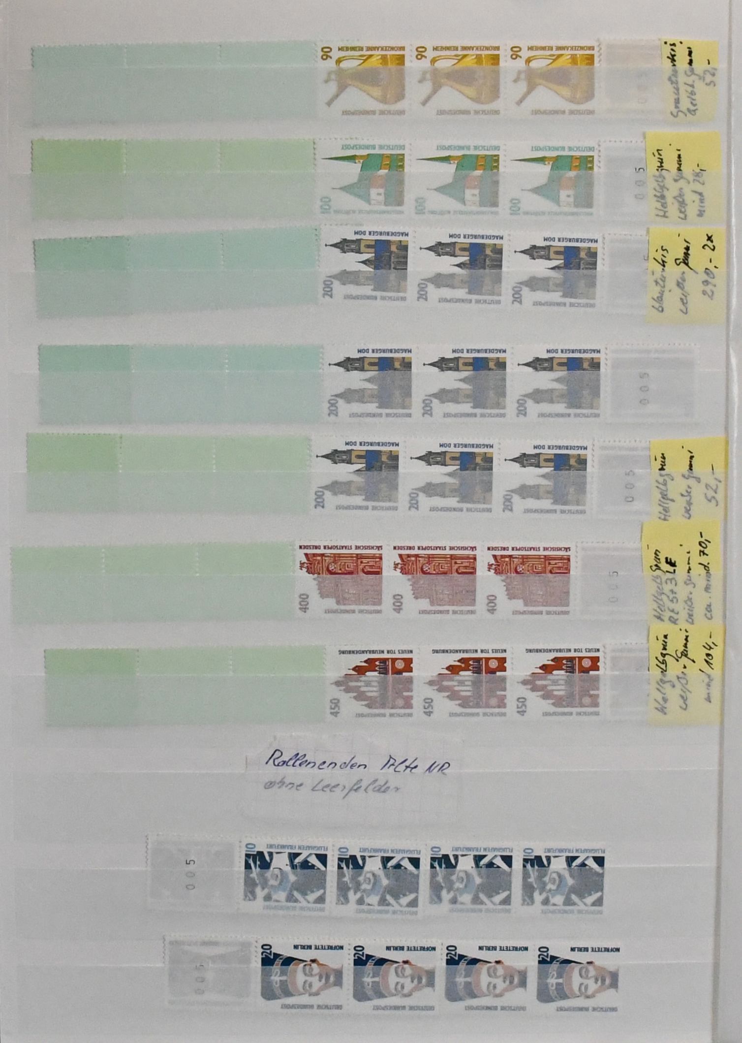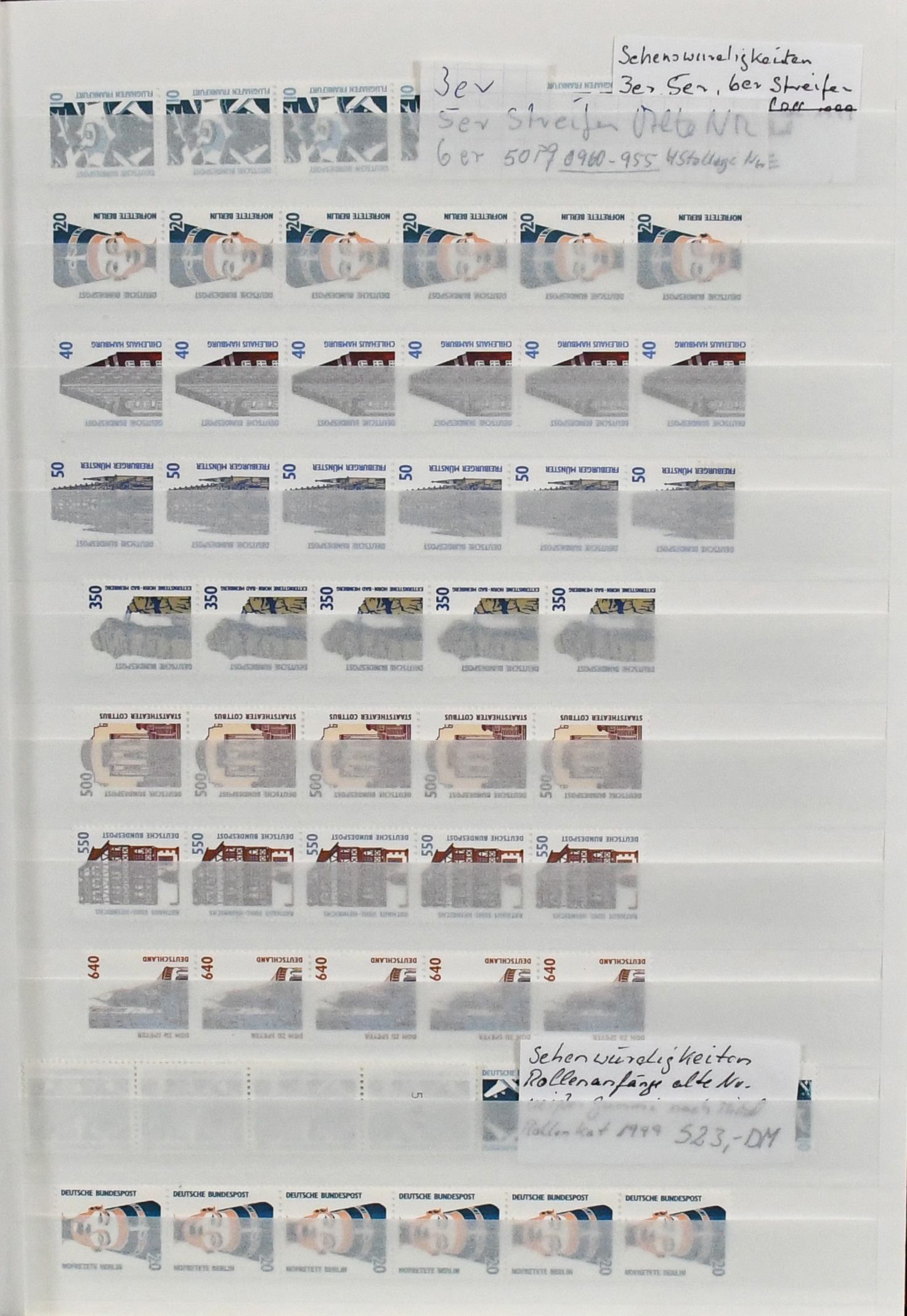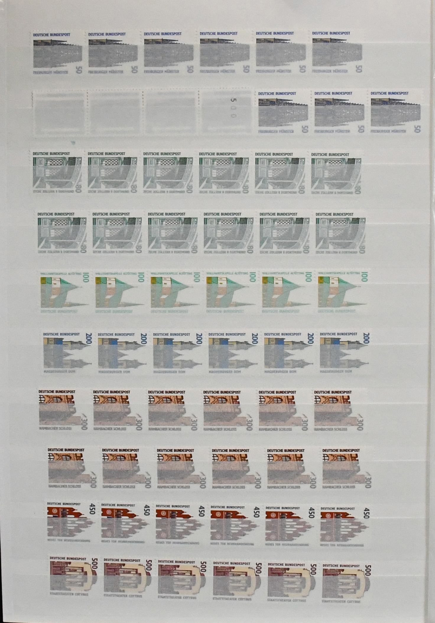 Bund, Rollenmarken Sehenswürdigkeiten, postfr. Slg. senkrechter Fünfer- und teils Sechserstreifen, dabei viele versch. Wertstufen bis 690 Pfg. Der ehem. Postpreis betrug bereits über 600,- DM