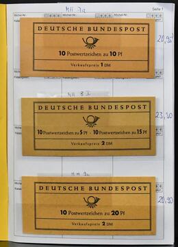 Bund, Markenheftchen, postfr. MH-Slg. mit MH 7a, 8I, 9u, v, 10, 11, 12au, bu, 22 Fehlfaltung, 25, 26b, 30 oZ, mZ, 33, 35I, II oZ/mZ, 36I oZ PF III, 39I oZ/mZ, II oZ, 37(4), 38(3)