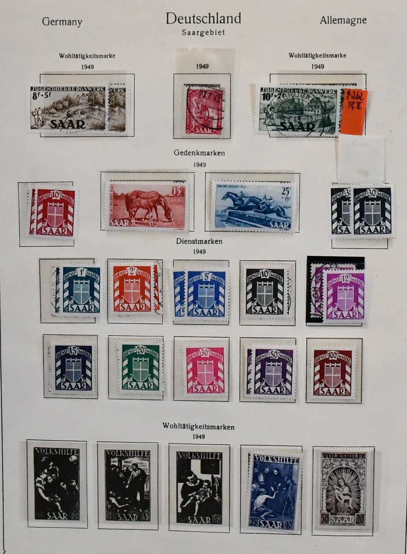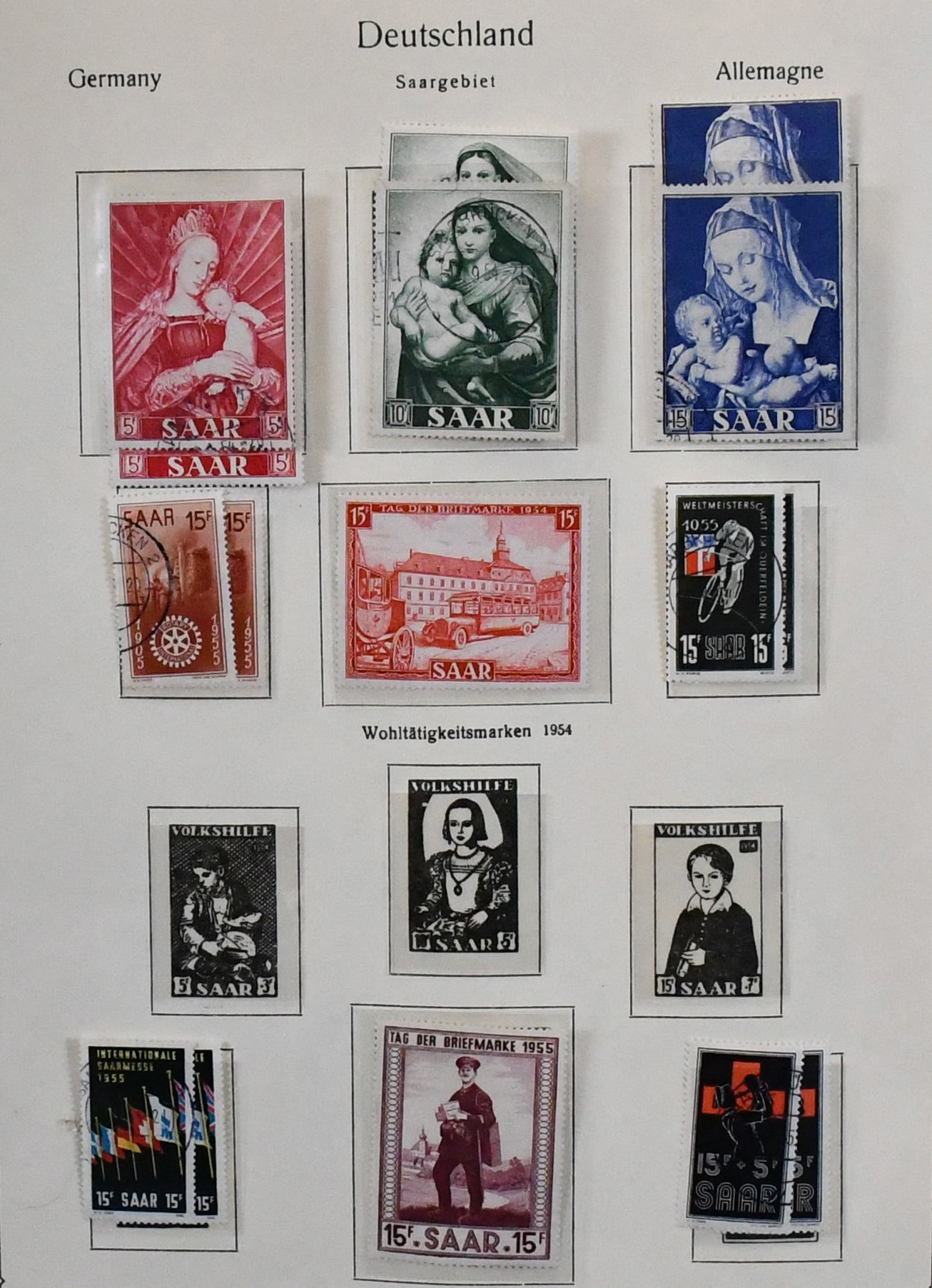 Saar, 1947/1959, gestempelte Slg. mit vielen kpl. Sätzen, u.a. Nr. 206/54, 262/66, die Jahrgänge 1952/1959 kpl., usw. Mi. 1700,-