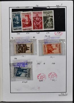 Saar, 1947/59, gest. Slg. mit u.a. Nr. 262/63, 289, 292, 297/98 gepr., Volkshilfen 1950 u. 1951, letztere gepr. Hoffmann BPP, Nr. 319/37 usw., auf Leuchtturm-Vordrucken. Mi. 2300,-