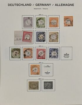 Deutsches Reich, 1872/74, gest. Slg. von 25 Brustschilden, u.a. mit Nr. 1/6, 7/10, 12 mit Federzug, 21/23, 27 usw., auf Schaubek-Vordrucken. Mi. 2300,-