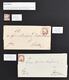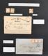 Brustschilde, Slg. im großen Steckbuch, dabei zahlreiche Briefe und Ganzsachen, u.a. Hufeisenstempel auf Brief mit Spalink Nr. 6/2, 6/6, 6/8, total 45 Belege und über 170 gestempelte Marken, Erhaltung üblich unterschiedlich