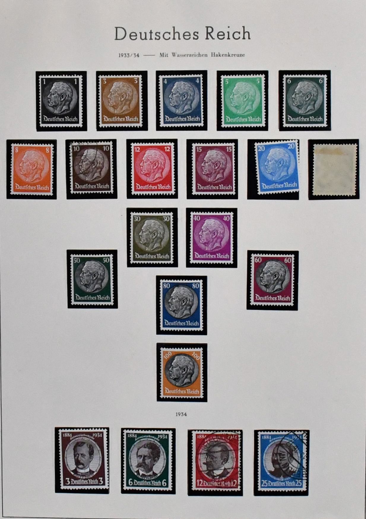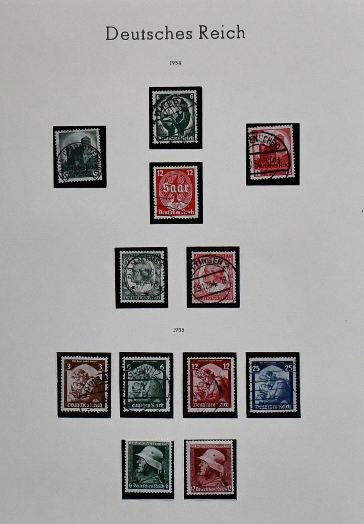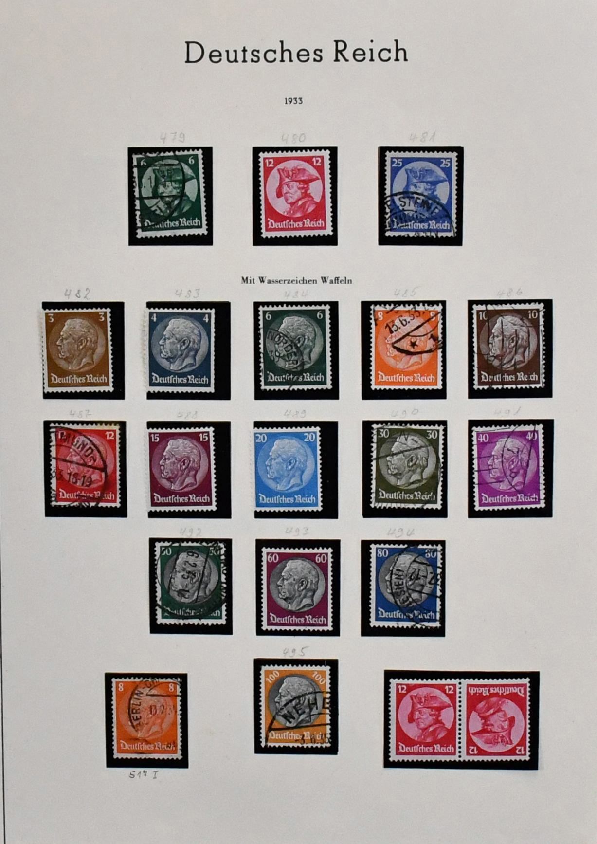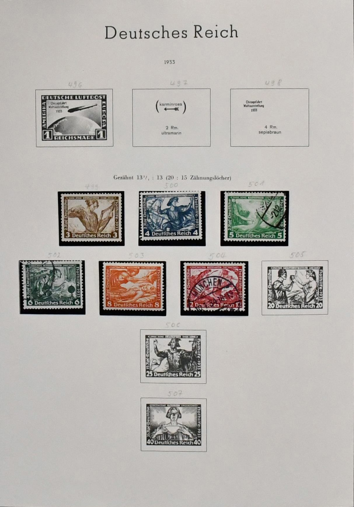 Deutsches Reich, ab 1930, Nachlaßslg. mit u.a. Nr. 462 gest. (Mi. 100,-), 474/78 gest. (110,-), 603 postfr., Bl. 7/8, auf Vordrucken
