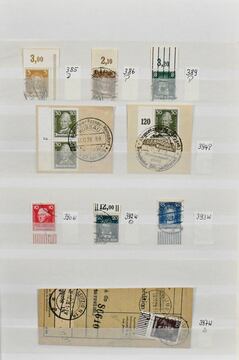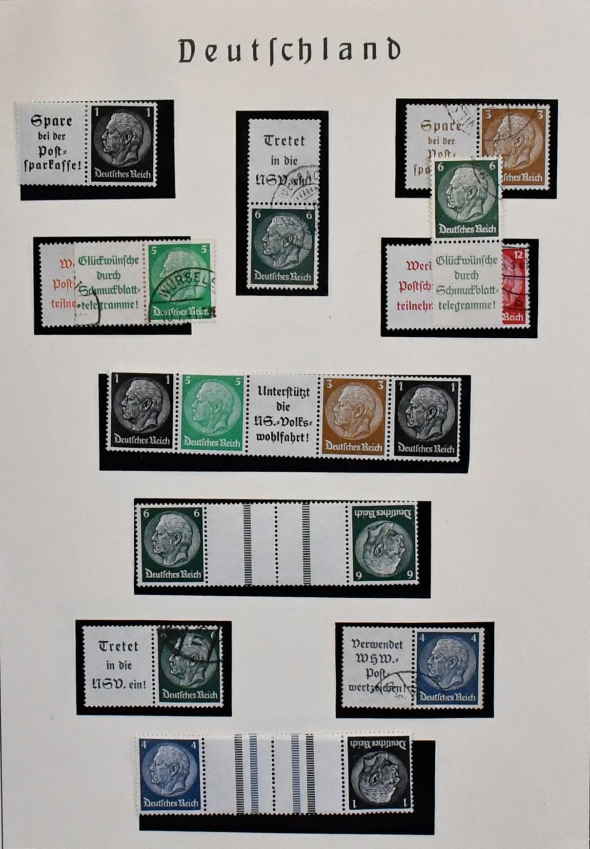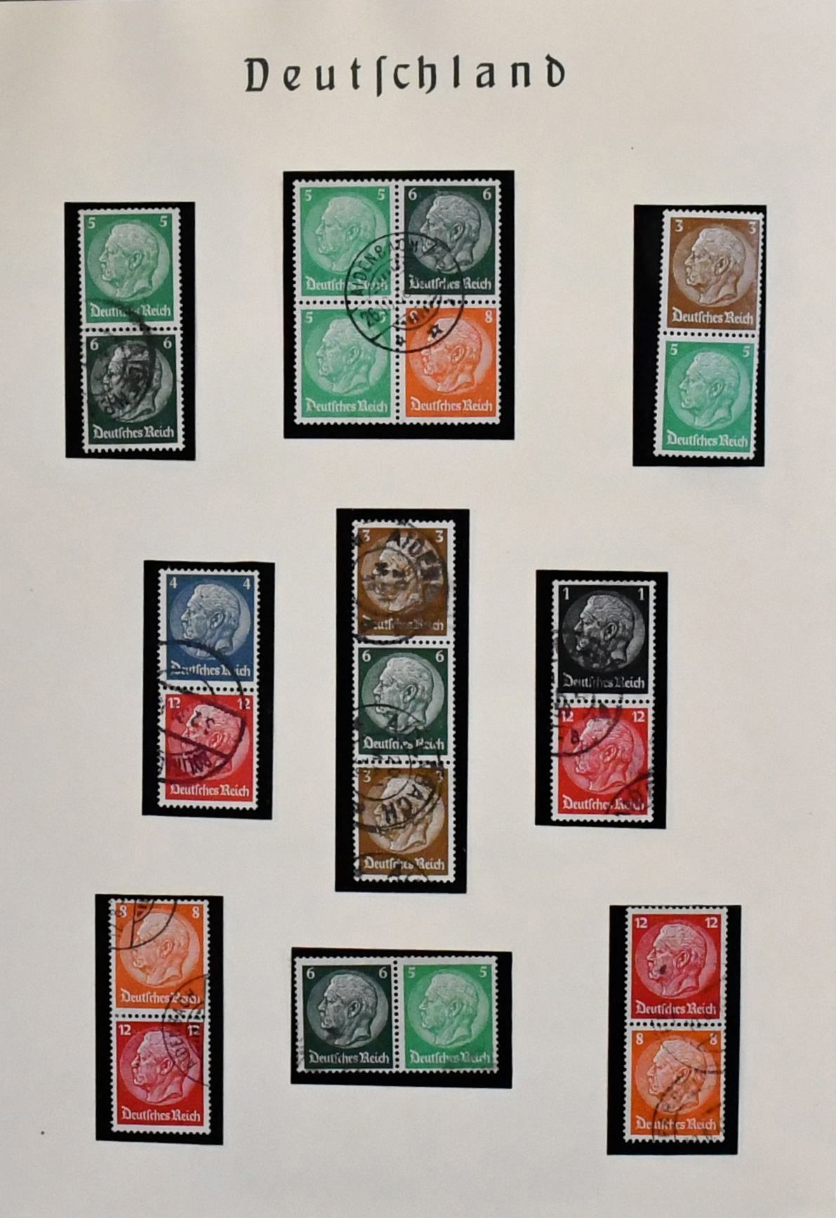 Weimar und III. Reich, Zusammendrucke, gestempelte Partie nur besserer Zus.-Druck-Kombinationen, dabei S36, W22 (Vollstempel "Braunschweig"), Kant W23 (Mi. 300,-), Nothilfe S84, Präsidenten 1932, u.a. mit Kehrdrucken, III. Reich mit "Waffeln" KZ17/18 (Mi. 160,-), K20/23, S219/22. Mi. 1300,-