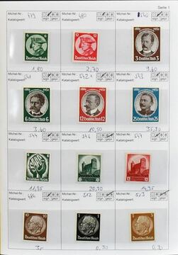 III. Reich, meist postfr. Partie mit Nr. 595/97 (Mi. 150,-), 603, 634/42, 669/70, Dienst Nr. 132/77 (Mi. 295,-), je postfrisch, usw., vierstelliger KW