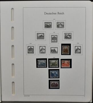 Deutsches Reich ab 1933, Slg. ab Nr. 479/95, inkl. Nr. 488/89 postfr., 512/28 postfr. (zwei billige Werte Falz), 529/39 ungebr., 538 sogar postfr. (Mi. zusammen 240,-), einige Zus.-Drucke, z.B. SK20 usw., auf Leuchtturm-Vordrucken