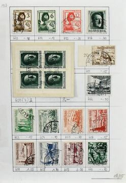 Deutsches Reich, 1937/1945, gest. Slg. mit u.a. Winterhilfen 1937/40, Nr. 698 mit SST auf Luxusbriefstück, Nr. 728, 746/47, 799/802A usw., bis Nr. 909/10 mit Gefälligkeitsstempel