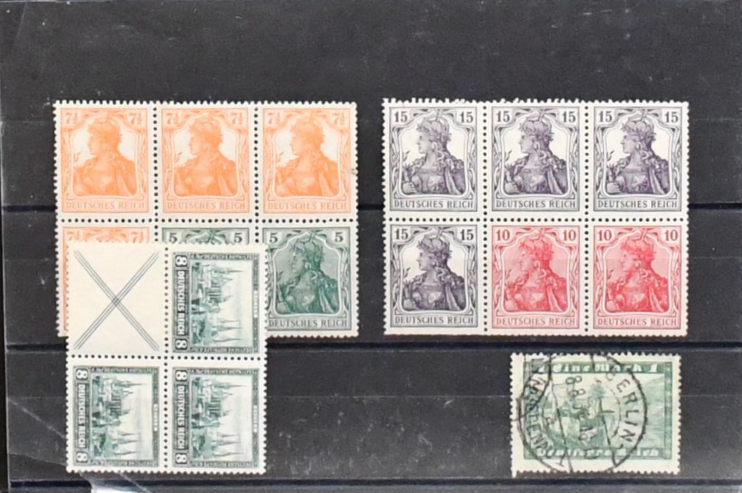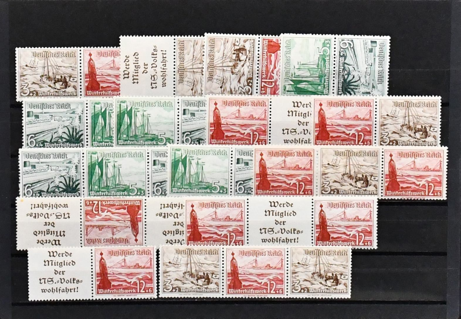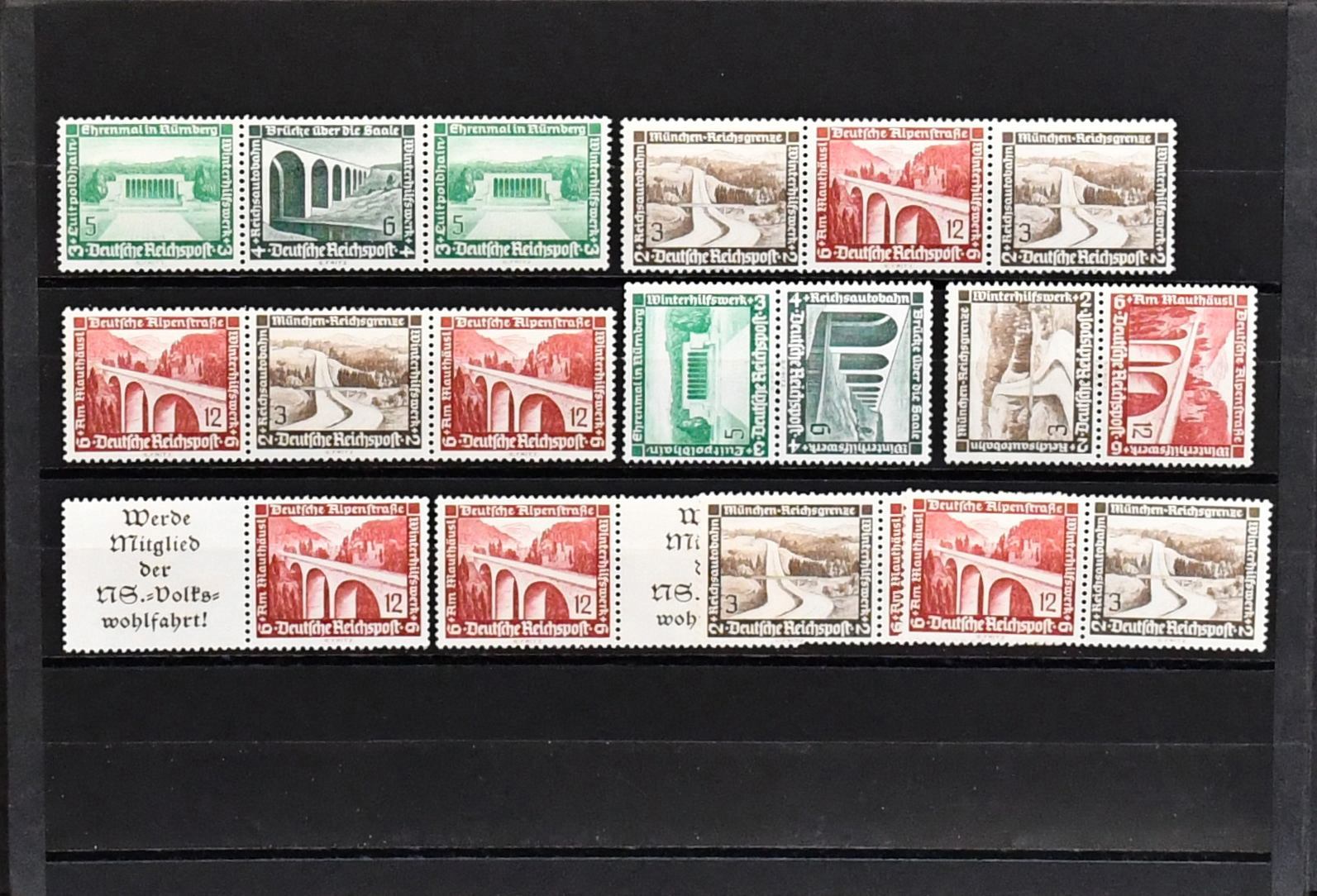 Deutsches Reich, Zusammendrucke, postfr./ungebr. Partie mit besseren Kombinationen, z.B. mit Germania S7 per zwei, Weimar S37 postfr., S72 postfr., Hindenburg mit Waffeln, K17/18, Stände weitgehend kpl., u.a. S223/26, 227/30, WHW 1936 mit 15 Zus.-Dr. kpl., dito 1937 kpl. Mi. 1300,-