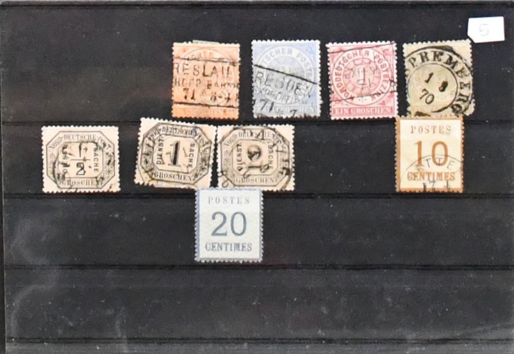 Brustschilde, Slg. auf selbstgest. Blättern, gestempelt und auf Brief, teils sehr spezialisiert, beginnend mit Vorläufern der Reichspost inkl. Brief Preußen Nr. 2d, Sachsen Nr. 11, NDP/Elsaß, der Markenteil "durchgeprüft" in oft guter Erhaltung, mit Nr. 1-6 inkl. 2a/b, 7-11 kpl. geprüft, Nr. 12 in Vierfarben-Mischfrankatur auf Brief, 12/13 gepr. und 21c mit Attest als "einwandfrei", ferner 17a/b, 23a/b, gepr., sowie 27a/b/c, letztere beiden mit Attesten "gute Gesamterhaltung" bzw. "gut erhaltener Wert in der selteneren Farbnuance", bis gepr. Nr. 29/30. Mi. mindestens 12425,-, mit den gut attestierten seltenen Marken Nr. 21c und 27c ein seltenes Angebot!