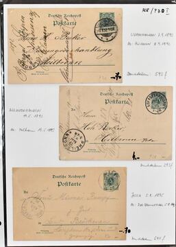 Brustschilde, Slg. von nur Besonderheiten auf Blanko-Blättern, beginnend mit NDP-Brief vom 12.5.71, dem ersten Tag der Reichspost nach Umbennung der NDP-Post, vieles gepr. bzw. Befund, dabei Nr. 10 in MiF mit Nr. 25 auf Recobrief, Nr. U1A früh im Januar 1872 gebraucht als Ortsbrief Berlin, Nr. 17a als EF auf seltenem Ortsbrief aus Berlin, Nr. 25SKA auf Brief (Befund), etliche Plattenfehler, u.a. Nr. 19XVIII, sowie 25XI und XXXV je auf Brief (Befund), zwei extreme doppeldruck-ähnliche Schmitzdrucke, Formate L14 bis L16, fZL, Doppelprägung Nr. 28 (drei Atteste), Hufeisenstempel, Nr. 15 mit sehr rauher Zähnug auf Postkarte, diverse Werte mit Doppelentwertungen inkl. Transitstempeln, zwei Briefe vom 1.1.75, ein Brief vom 4.8.78 unbeanstandet etc. Reizvolles Los
