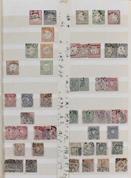 Brustschilde, überkomplette gestempelte Slg. auf Bl., mit allen Spitzen (Nr. 12/13 einmal handschriftlich entwertet und zusätzlich Nr. 13 gest., gepr. Bühler), Nr. 24 u. 28, 27b, zweimal Nr. 29 etc., auch Besonderheiten wie Nr. 27 mit Letzttags-K2 "Posen 31.12.74" (Groschen-Gebiet) etc. Auffällig ist, dass der Sammler durchweg Wert auf klare, zentrische Abschläge gelegt hat, deshalb ist der von uns errechnete Michel-Wert von rund 16.000,- trotz der üblich etwas untersch. Erhaltung nur ein Ansatzpunkt (auch viele Luxusstücke enthalten!). Unberechnet dazu eine unseres Erachtens falsch gest. weitere Nr. 30, sowie fünf versch. Telegraphenmarken