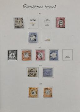Deutsches Reich, 1872-1889, überwiegend gest. Slg. in meist guter Erhaltung auf alten Albumblättern, dabei u.a. Nr. 2, 4-5, 9, 13 ungebr., 14-15, 16 ungebr., 22, 29, 30 (ungest.), 31-36 usw. Ferner Telegraphenmarken mit Nr. 10-18 (hs. entwertet), sowie DAP Türkei mit Nr. 1 u. 2 ungebr., 5, 6-10 etc.