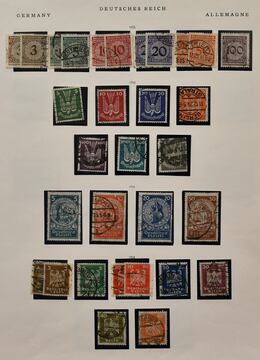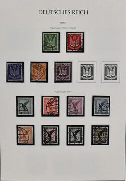 Weimarer Republik, fast durchweg gestempelte Slg. mit u.a. Nothilfen 1924/1927 und 1930/1932 kpl. gest. (Mi. 747,-), Flugpost 1926 gest. (160,-), Nr. 344/48 gest., IAA ungebr., Zeppelin 1/4 RM usw., auf Leuchtturm-Vordrucken. Mi. 1700,-