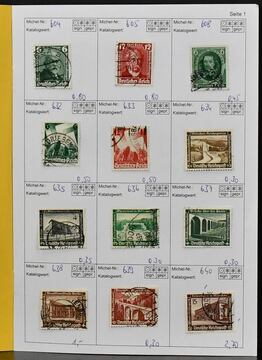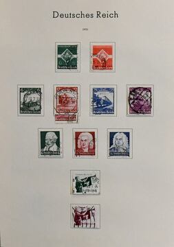 III. Reich, 1933-41, gest. Sammlungsteil mit besseren wie Kolonialforscher, WHW Stände, Trachten, Olympia, Nr. 634-42, Block-Einzelmarken wie Nr. 649 (ungest.), 651-59, 695-97, 698-99, Danzig-Abschied etc.