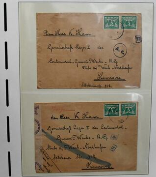 III. Reich, hauptsächlich 1933-37, Spezialslg. von losen Marken und 117 Belegen, alle mit "Hannover"-Stempeln oder -Bezug, dabei auch gute Hindenburg-Zusammendrucke, WHW etc.