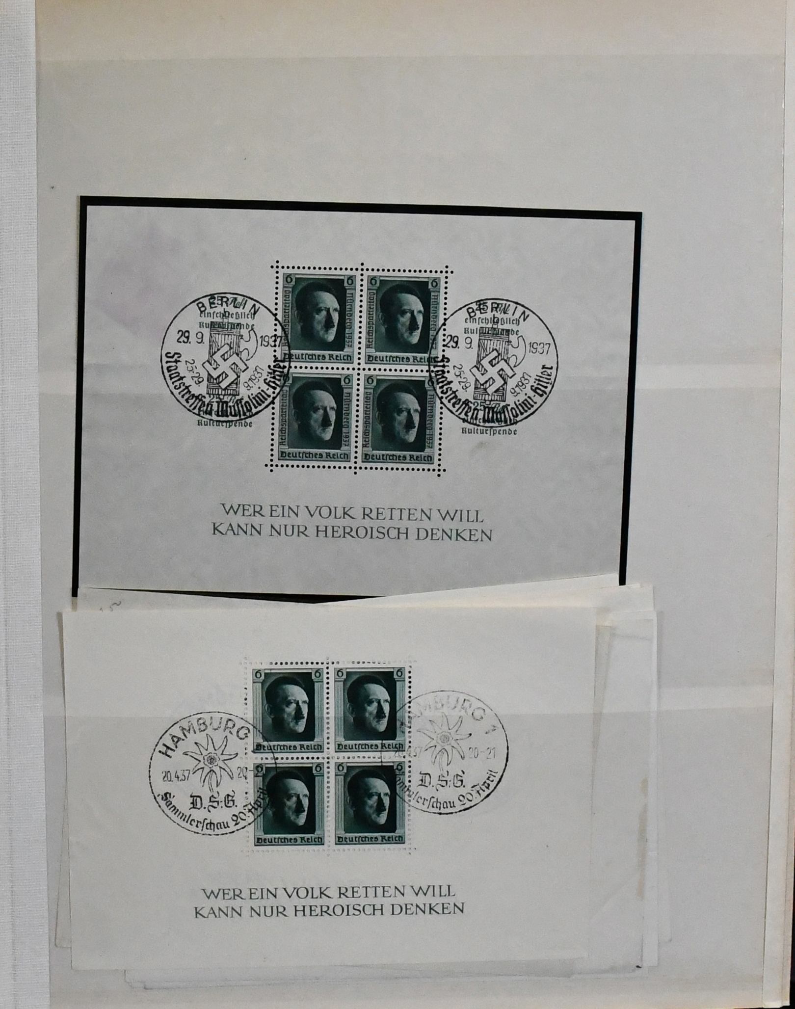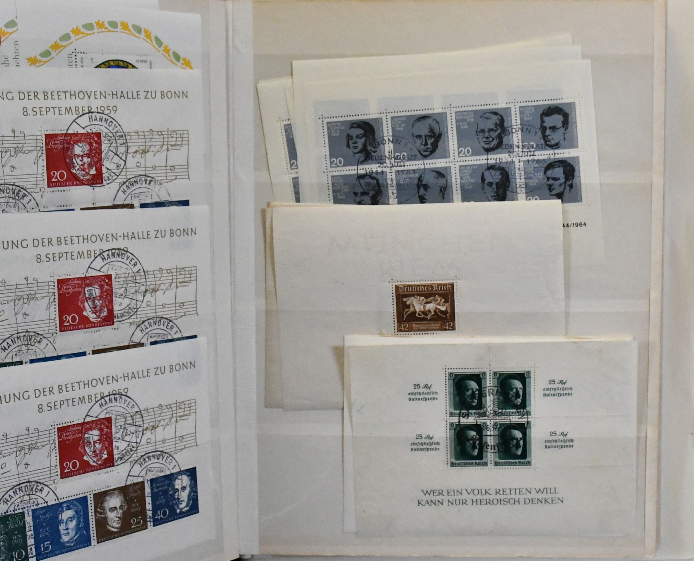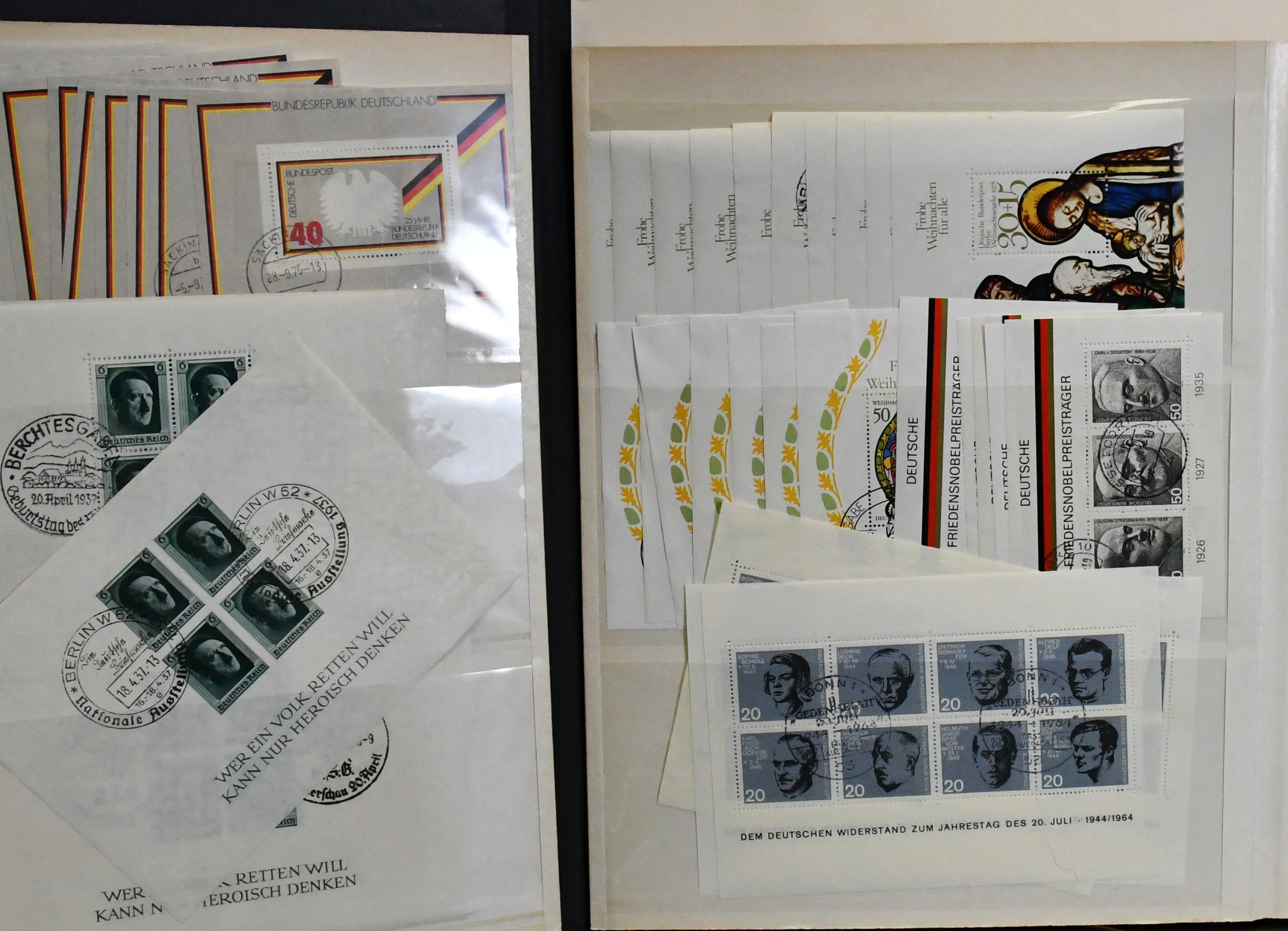 Deutschland, Klemmbinder mit über 400 Blöcken, dabei gut 50 Blöcke Deutsches Reich ex Bl. 4/11, inkl. zweimal Bl. 5/6, Bl. 8 per acht, guter Bl. 9 per neun, Bl. 11 per sechs, Danzig viermal Bl. 1/2, sowie viel Bund/Berlin mit gest. Bund Bl. 2 per 32 (Mi. 1600,-) etc. Sehr hoher KW!