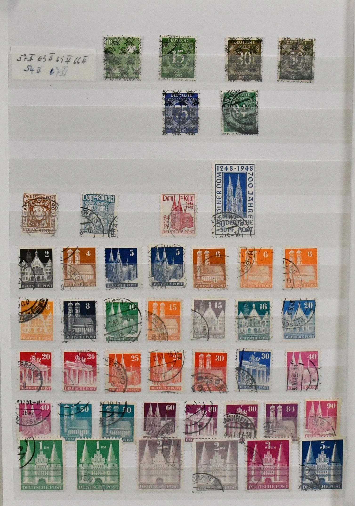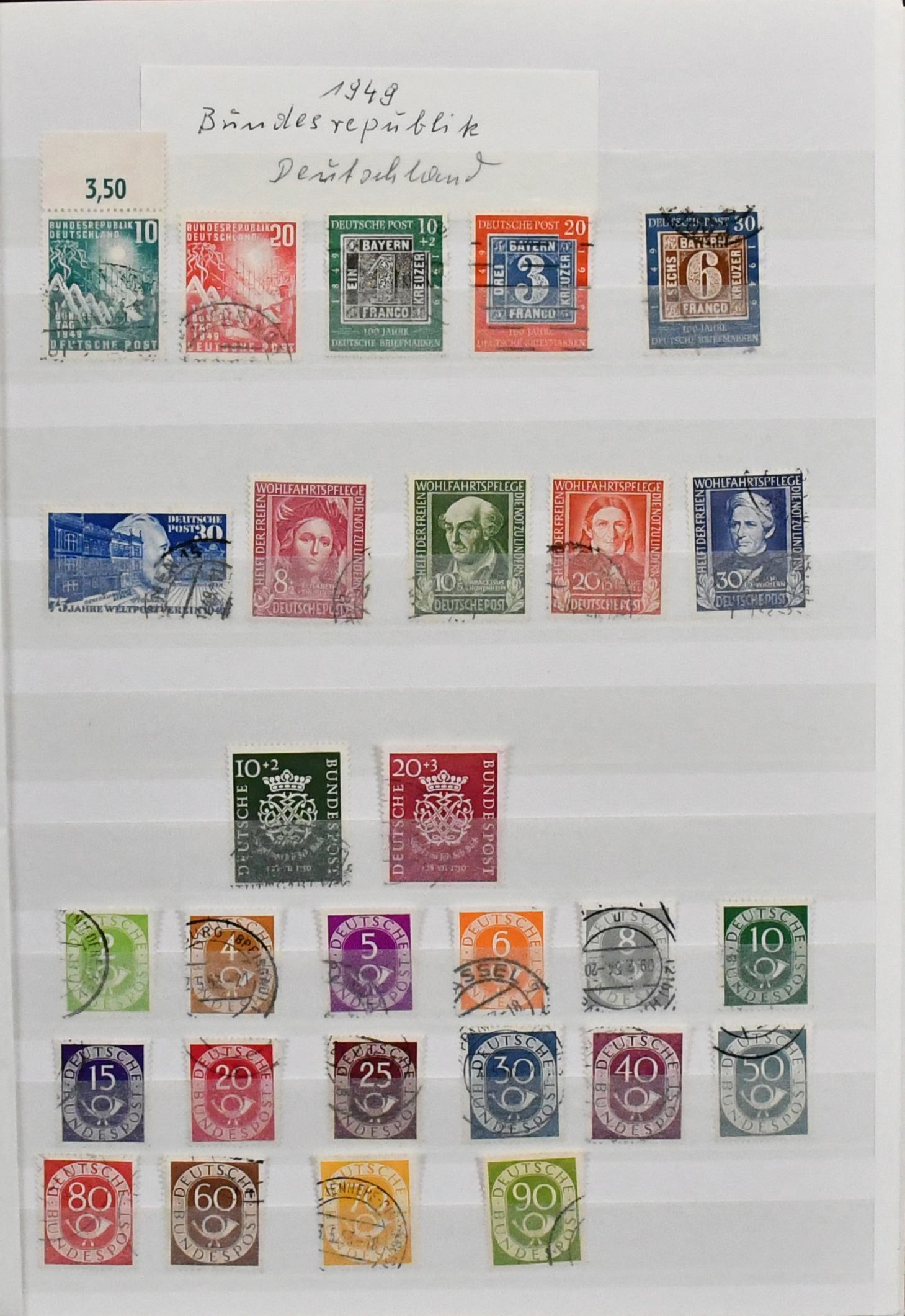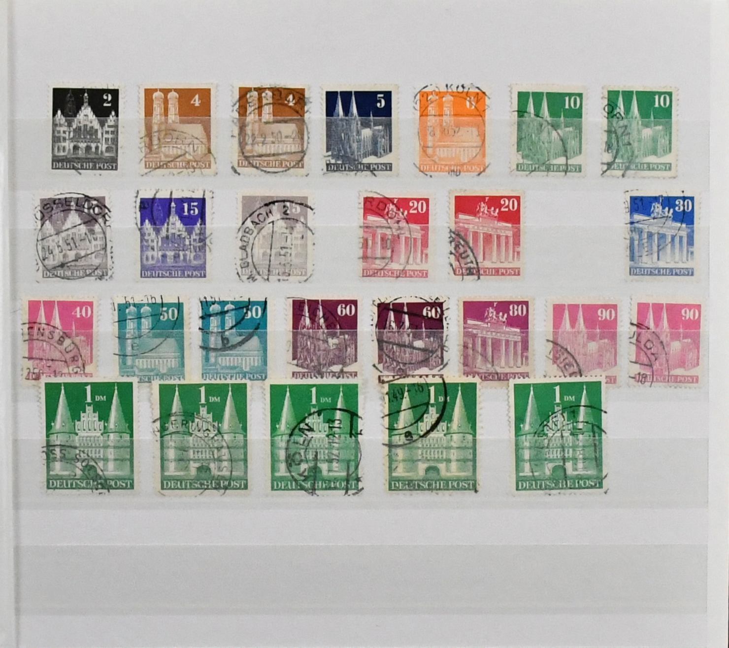 Deutschland, Sammlungsbestand in sieben Bänden mit Material in allen Erhaltungen, dabei Bund 1949-83 fast kpl. gest., mit Helfern, Marienkirche etc., weitergehende postfr. Vordrucksammlungen bis 1990, DDR ab 1949-90 über weite Strecken kpl., anfangs gest., später postfr., Lagerbestände usw.