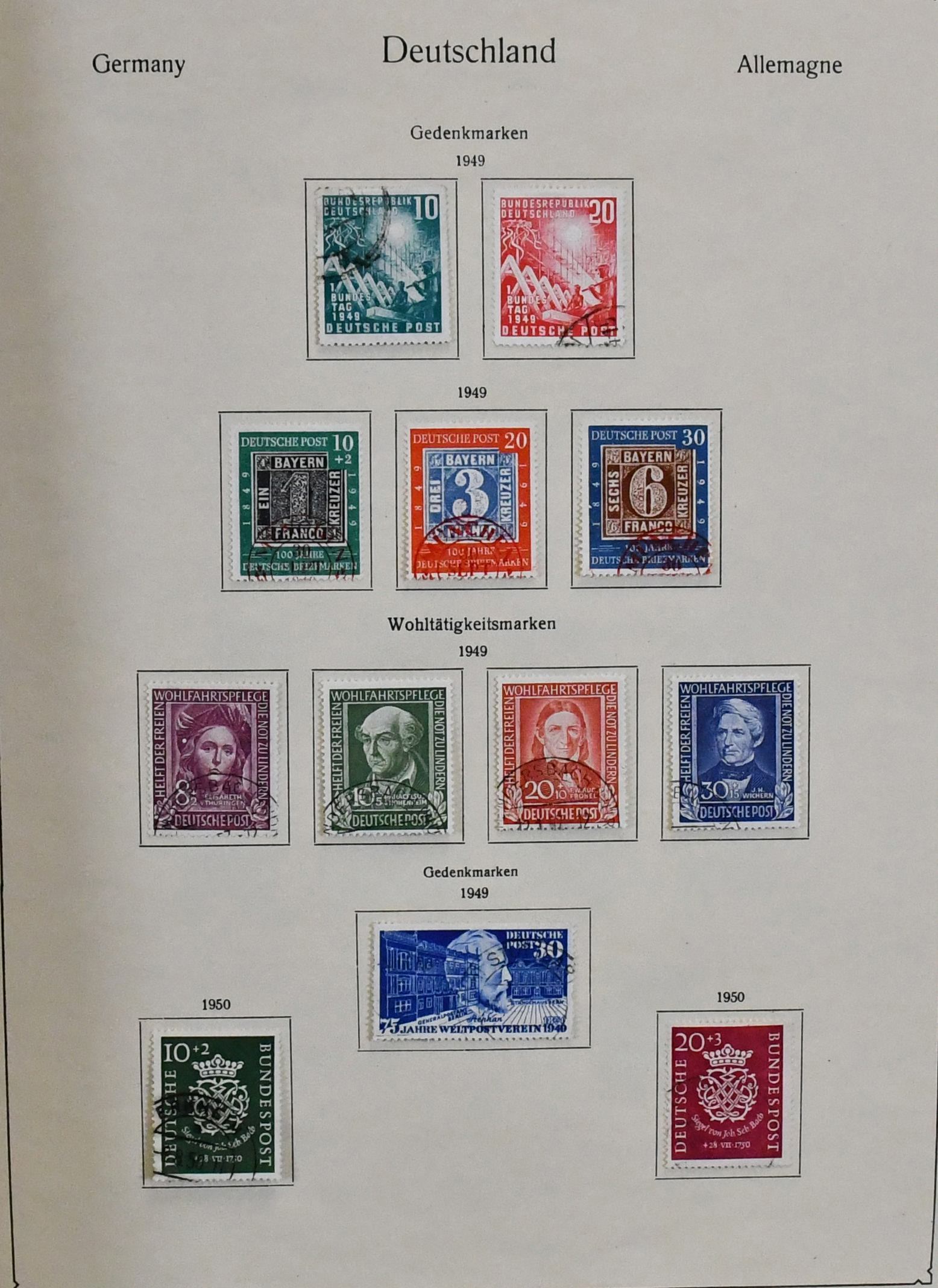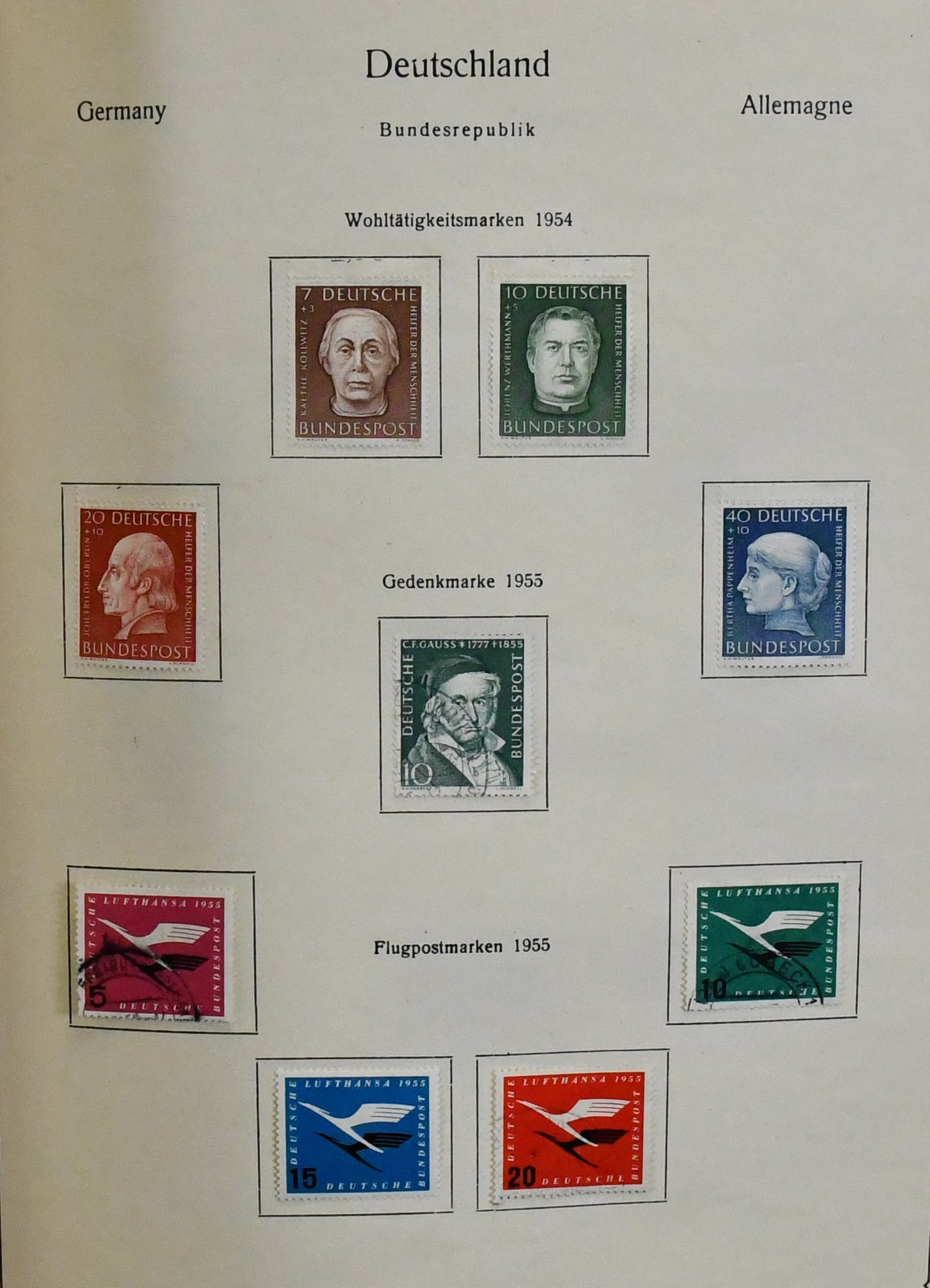 Deutschland, uriger alter Sammlungsbestand in vier Bänden mit Material in untersch. Erhaltung, dabei Deutsches Reich aus 1872-1944 reichlich ab Krone/Adler u. Germania, viel Infla, auch gestempelt, III. Reich und Dienst, Zonen, z.B. SBZ Nr. 20/22, DDR ab Anfang mit Nr. 242, 284/85, 287/88, Marx-Bl. 8/9A, Bund ab 1949-73 mit einigen Helfer-Serien, Berlin-Teile usw.