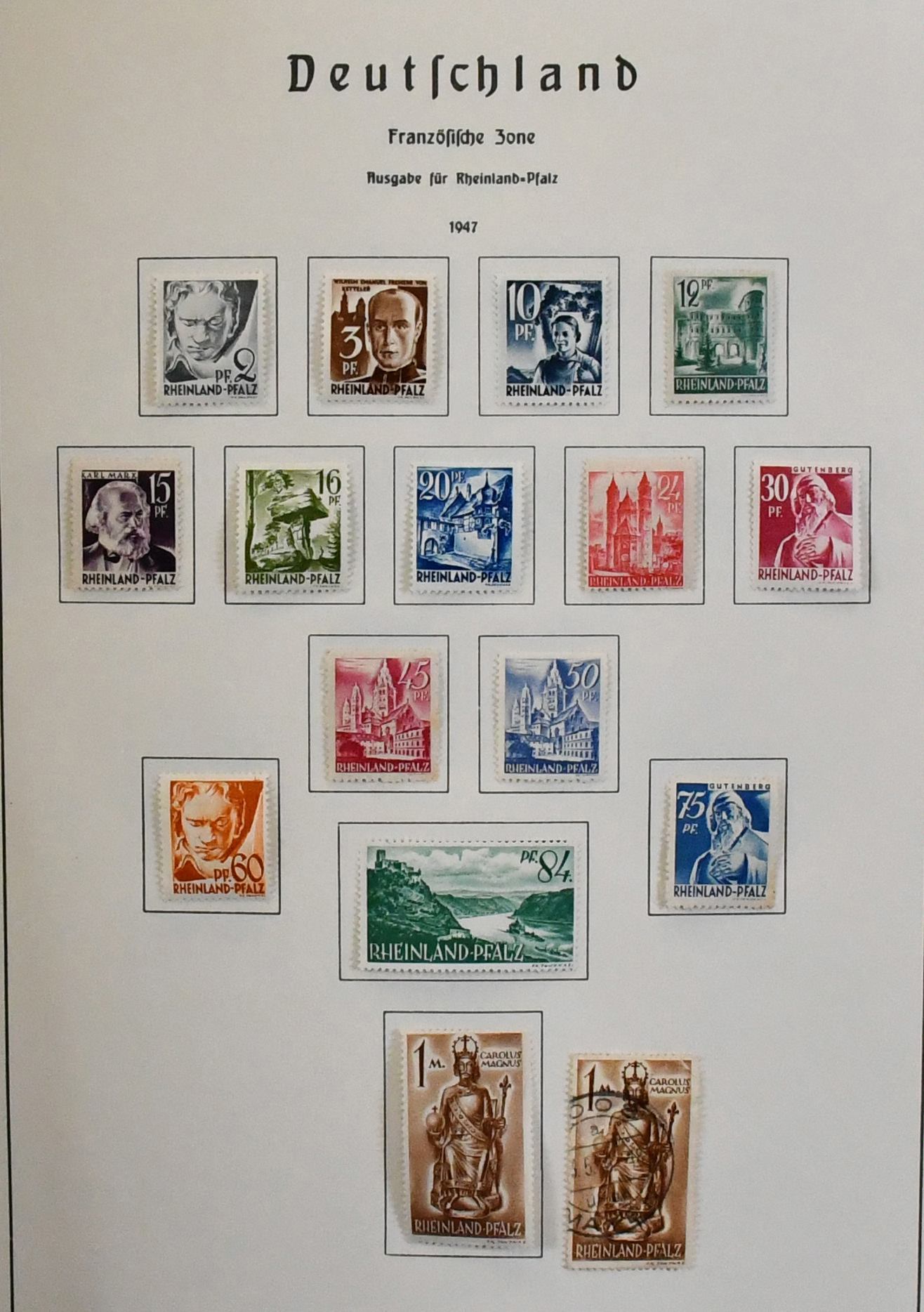 Deutschland nach 1945, Nachlaßbestand in sechs dicken Vordruckalben, dabei Berlin 1955-79 postfr. kpl., Bund 1949-2003 ab einigen Anfängen, Schwerpunkt ab 1955 postfr. über weite Strecken kpl., teils zusätzlich gest., Zonen mit Bl. 12A/B, VzdI u. II etc.