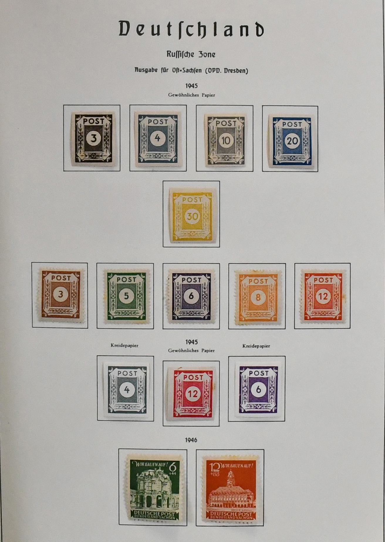 Deutschland, 1945-1964, Generalsammlung in allen Erhaltungen mit besseren Werten in drei schweren "Schwarten", dabei alle Zonen, u.a. SBZ mit Mecklenburg Nr. 20/22, 23/25, Bizone, Bund mit Anfängen wie Nr. 140, 167/70, 200/203, 222/25, Berlin, Neusaar, DDR ab 1949 reichlich, z.B. Akademie, Chinesen u.v.m. Günstiger Ausruf!