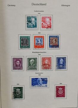 Deutschland nach 1945, Sammlungsbestand in drei Alben, dabei Bund 1949-84 fast kpl., meist ungebr./postfr. und wenig gest., Berlin ab ca. 1961-90 mit vielen postfr. Viererblöcken, sowie DDR 70er Jahre