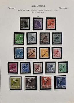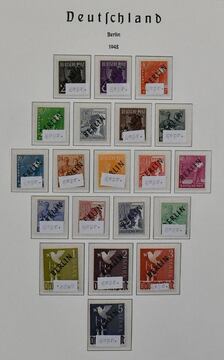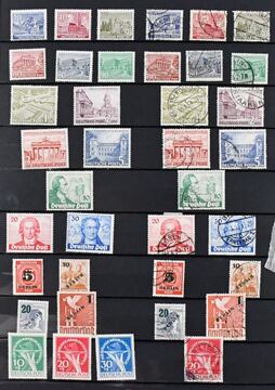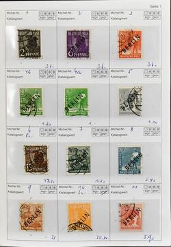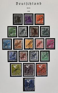 Berlin, 1948/1990, rundgestempelte, lediglich ohne Nr. 20, komplette Sammlung im Leuchtturm-Vordruckalbum. Dabei Schwarzaufdruck, bei dem die Mark-Werte falsch sein dürften, guter Rotaufdruck-Satz, Nr. 35/41, 61/63, Währungsgesch.-Satz und -Block (Stempel ungeprüft), alle Glocken, Nr. 71/74, 106/9 usw. Der Ausruf erfolgt unter Berücksichtigung sämtlicher Eventualitäten