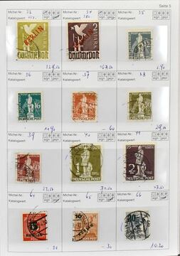Berlin, 1948-55, gest. Sammlungsteil ab Nr. 1-15 (mit Nr. 14I), 17, 19 zart gest., 21-32, 39-41, 59X, 61-63, zusätzlich 61I, 63I, 68 vom OR mit seltener Randmarkierung, 69 OR, 70, 71-128 kpl., letztere auf FDC