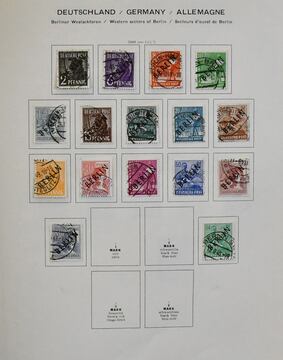 Berlin, 1948/1990, umfangreiche gest. Slg. im Sieger-Vordruckalbum. Dabei Nr. 1/17, 21/32, 35/41, 61/63, von 1950-1990 bis auf wenige Werte kpl. Mi. rund 3400,-