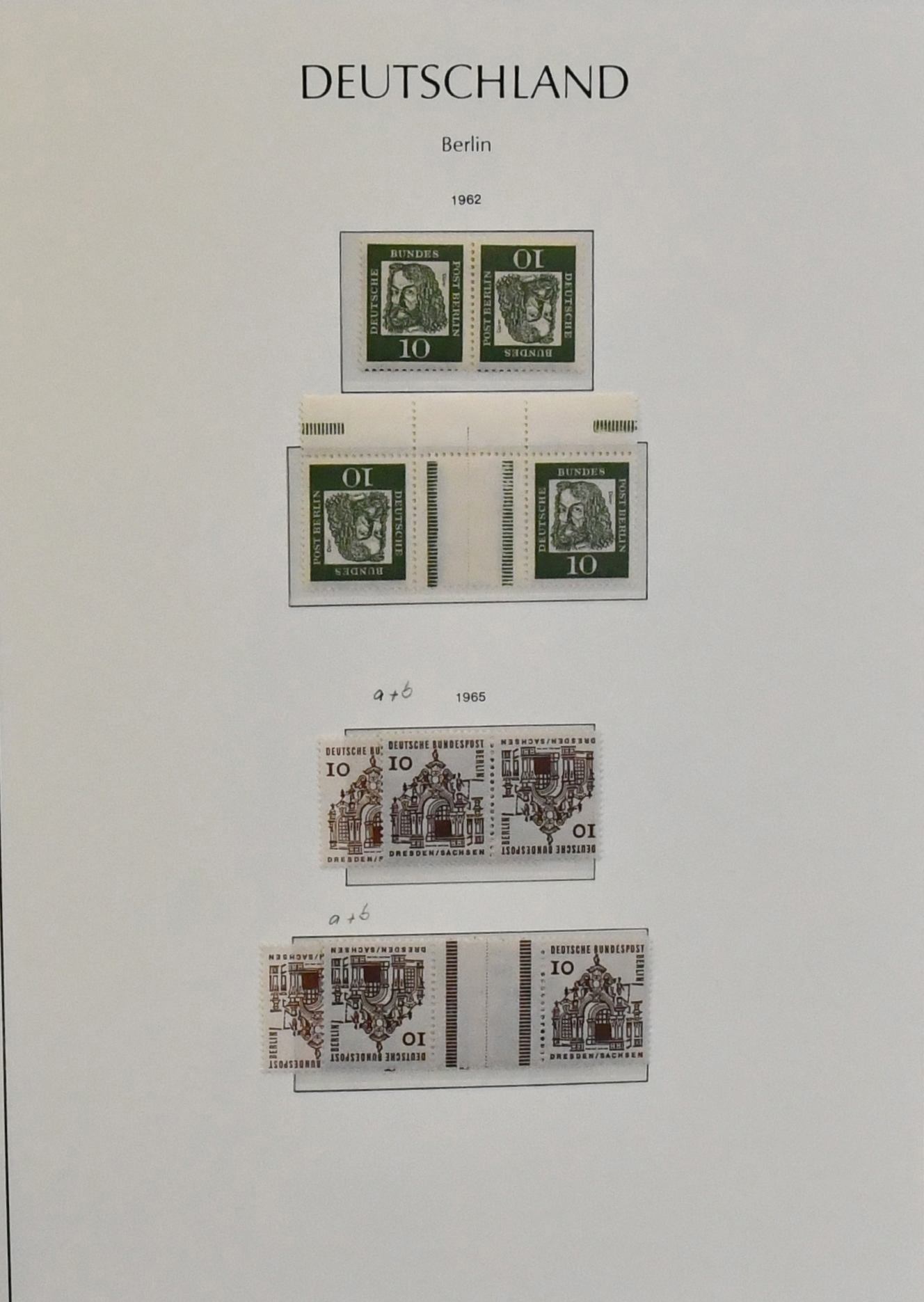 Berlin, 1949/1990, Zusammendrucke aus Markenheftchen, postfrische Slg. ab Bauten inkl. S1/2, bis SWK (kpl. inkl. allen C/D-Paaren), im Leuchtturm-Vordruckalbum. Mi. knapp 700,- + Album