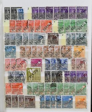 Berlin, 1948-58, gest. Sammlungsteil, bestes Stück ein gestempeltes senkrechtes Paar Nr. 34 mit einmal POR (Mi. "-.-"), ferner Nr. 61-63, 74, 80-87, 106-9 etc., günstig!