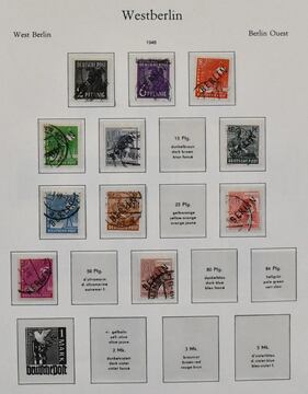 Berlin, 1948-1990, gestempelte Slg. im Vordruckalbum mit einigen Anfängen, dabei Schwarz- u. Rotaufdruck-Werte, UPU Nr. 35/41, 71, 75/79, 82/86, 101/5, ab 1954 annähernd kpl. Mi. ca. 2500,-