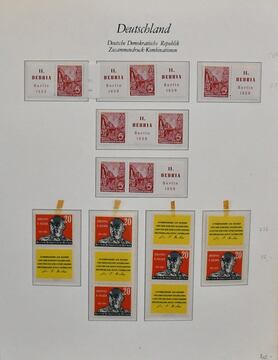 DDR, 1950-1990, umfangreiche, zweibändige Zusammendruck-Sammlung gestempelt, ab ca. 1955 wohl kpl., inkl. 5-Jahresplan, Messe `64, Olympiade `64, Trachten I, Weltraum usw., aber auch davor noch gut gesammelt mit Block-Zus.-Dr. aus Bl. 7, 11, 12, 13, 15, später auch noch mit vielen Viererblock-Kombinationen. Der Katalogwert dürfte bei über 7000,- Euro liegen, gestempelt seltener als postfrisch!