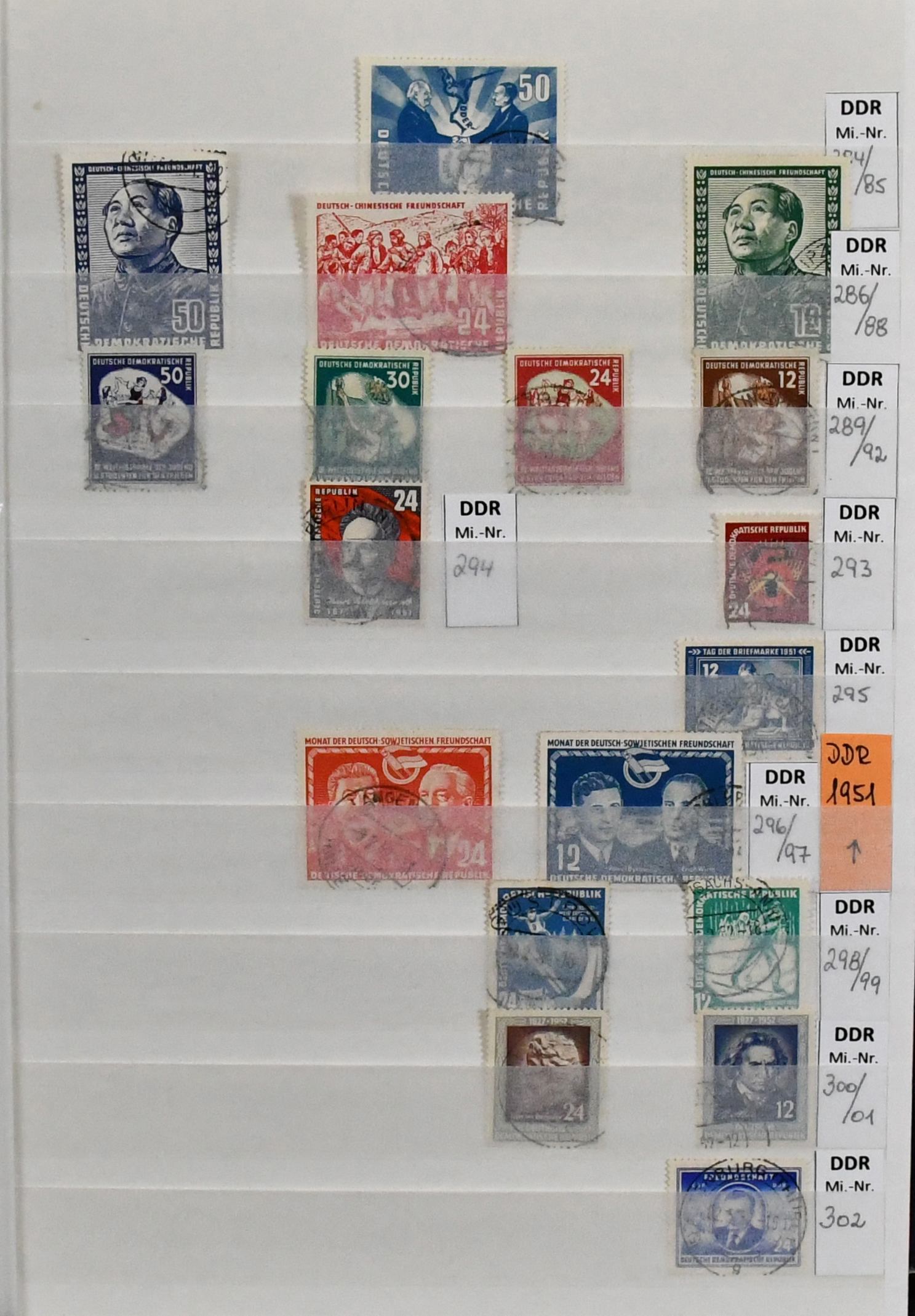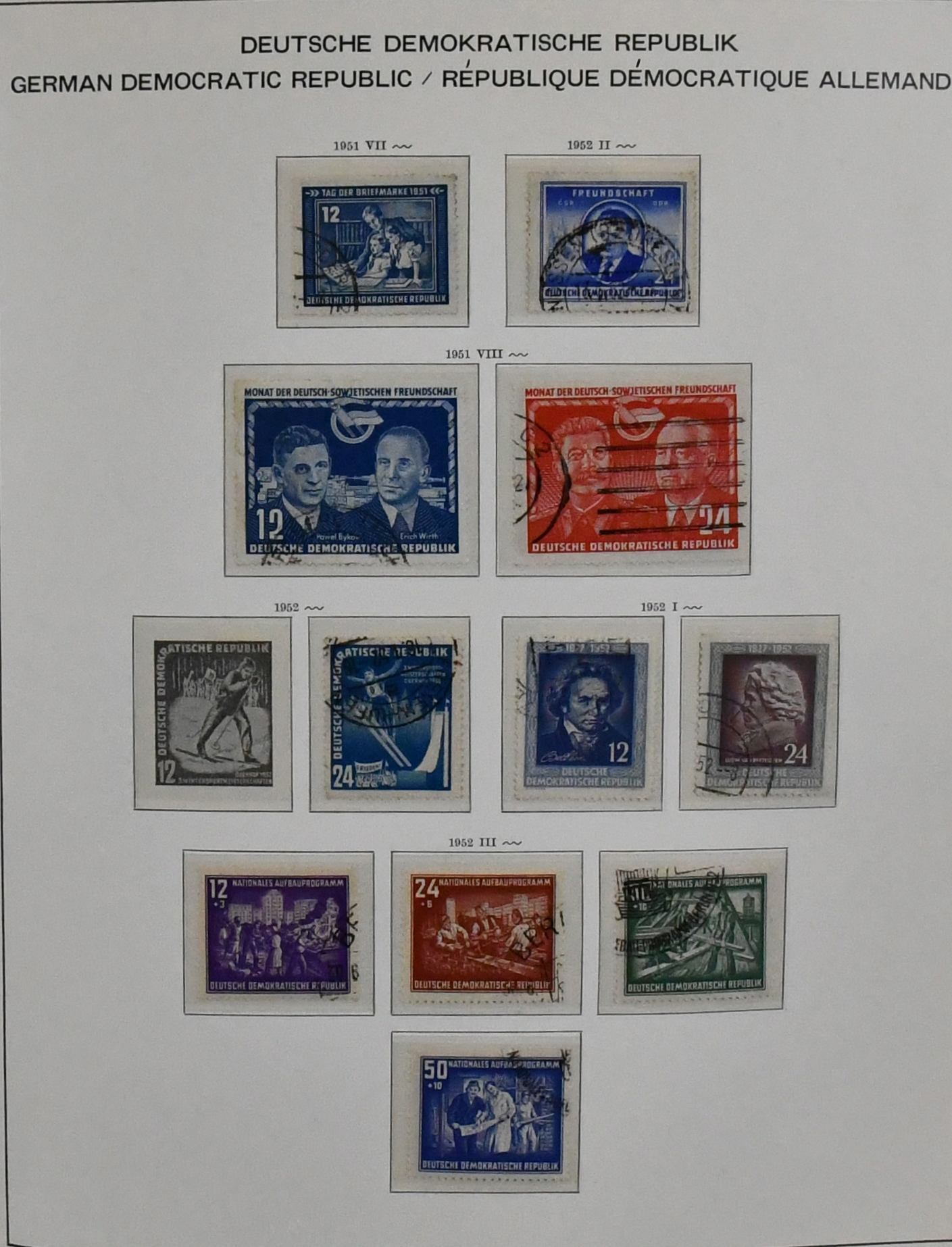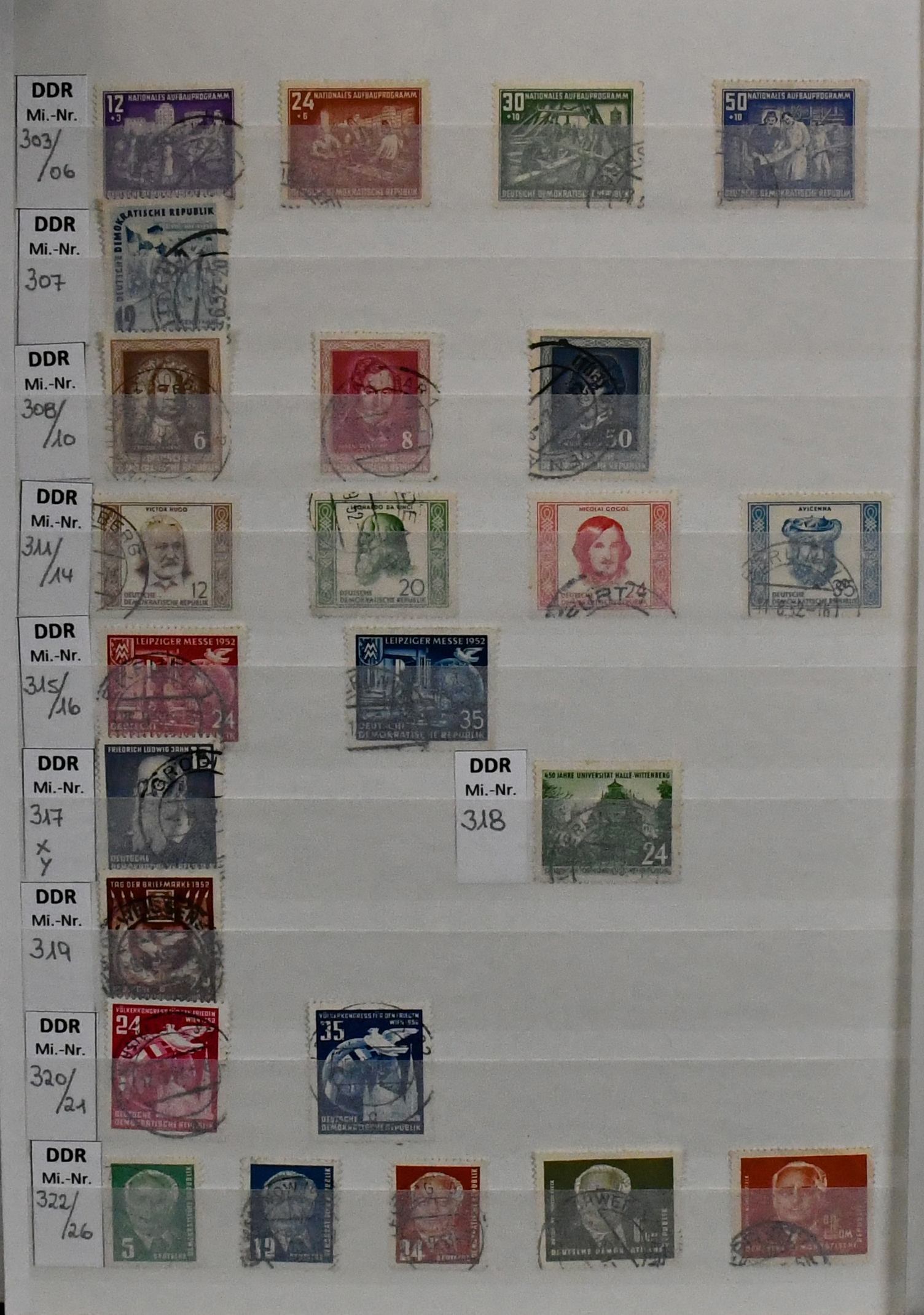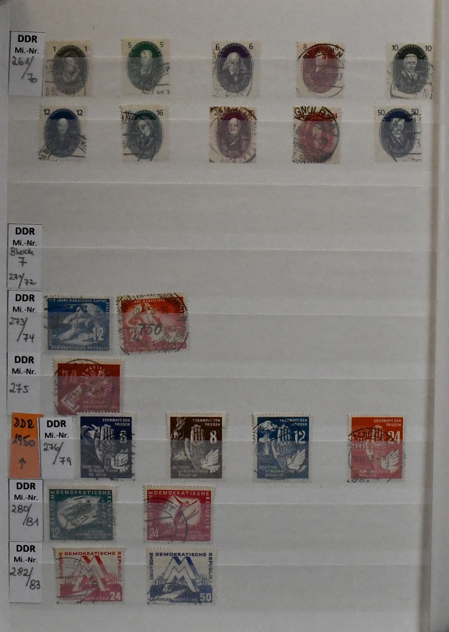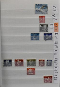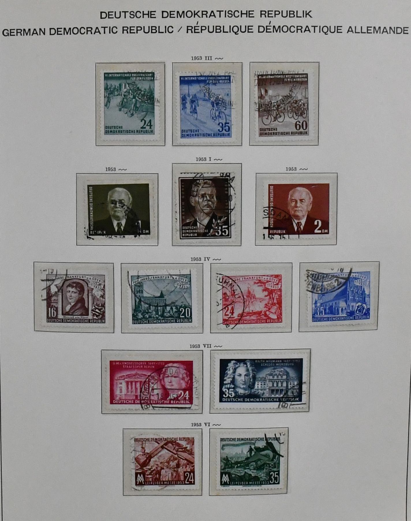 DDR, 1949/1968, gest. Slg. ab Nr. 242, mit u.a. Nr. 261/70, 286/88, Bl. 11/15 u. 19 etc., im dicken Album. Mi. 2700,-